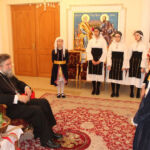 Ακολούθως, στις 11:30 το πρωί, τα μέλη του Εργαστηρίου Λαογραφικών Μελετών και Παραδοσιακών Χορών «Ο ΠΥΡΡΟΣ», της Θρακικής Εστίας και του Πανηπειρωτικού Συλλόγου Ν. Σερρών έψαλαν στον Σεβασμιώτατο με τις γλυκόλαλες φωνές τους τα πατροπαράδοτα κάλαντα του Αγ. Λαζάρου.