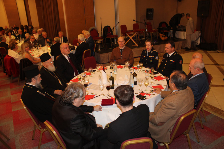 Στον σύντομο χαιρετισμό του, ο Σεβ. κ. Θεολόγος, αφού ευχαρίστησε τον π. Ιορδάνη για την συγκινητική του προσλαλιά, καλωσόρισε στην συνεστίαση τον τιμητικώς παρευρισκόμενο Σεβ. Μητροπολίτη Ναζαρέτ κ. Κυριακό, τον Διοικητή της 10ης Μηχανοποιημένης Ταξιαρχίας κ. Γεώργιο Λιάμπα, τους εκπροσώπους της Αστυνομικής Διευθύνσεως και της Πυροσβεστικής Υπηρεσίας Σερρών, τον Γεν. Διευθυντή του Ωδείου της Ιεράς Μητροπόλεως Πειραιώς κ. Νικόλαο Αμοργιανό, τον Πρόεδρο του Εμπορικού και Βιομηχανικού Επιμελητηρίου Σερρών κ. Αθανάσιο Μαλλιαρά, καθώς και τους λοιπούς εκλεκτούς συνδαιτυμόνες, τα έντιμα μέλη του διοικητικού Συμβουλίου του «ΜΑΞΙΜΕΙΟΥ», τους διδασκάλους και διδασκόμενους, το διοικητικό και λοιπό προσωπικό, τους φίλους, τους συνοδοιπόρους και συμπαραστάτες του πνευματικού αυτού Κέντρου, αλλά και την Σερραϊκή κοινωνία, που στηρίζουν με έναν συγκλονιστικό τρόπο, ηθικά και υλικά αυτήν την προσπάθεια της Εκκλησίας, γεγονός, που γεμίζει όλους με ελπίδα και χαρά. «Ας δοξάσουμε, ετόνισε ο Σεβασμιώτατος, το υπερύμνητο όνομα του αγίου Θεού μας για την μεγάλη αυτή ευλογία Του στην τοπική μας Εκκλησία».