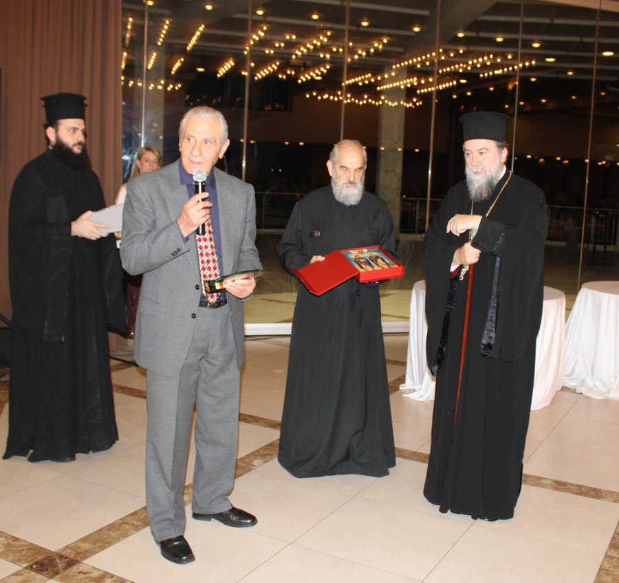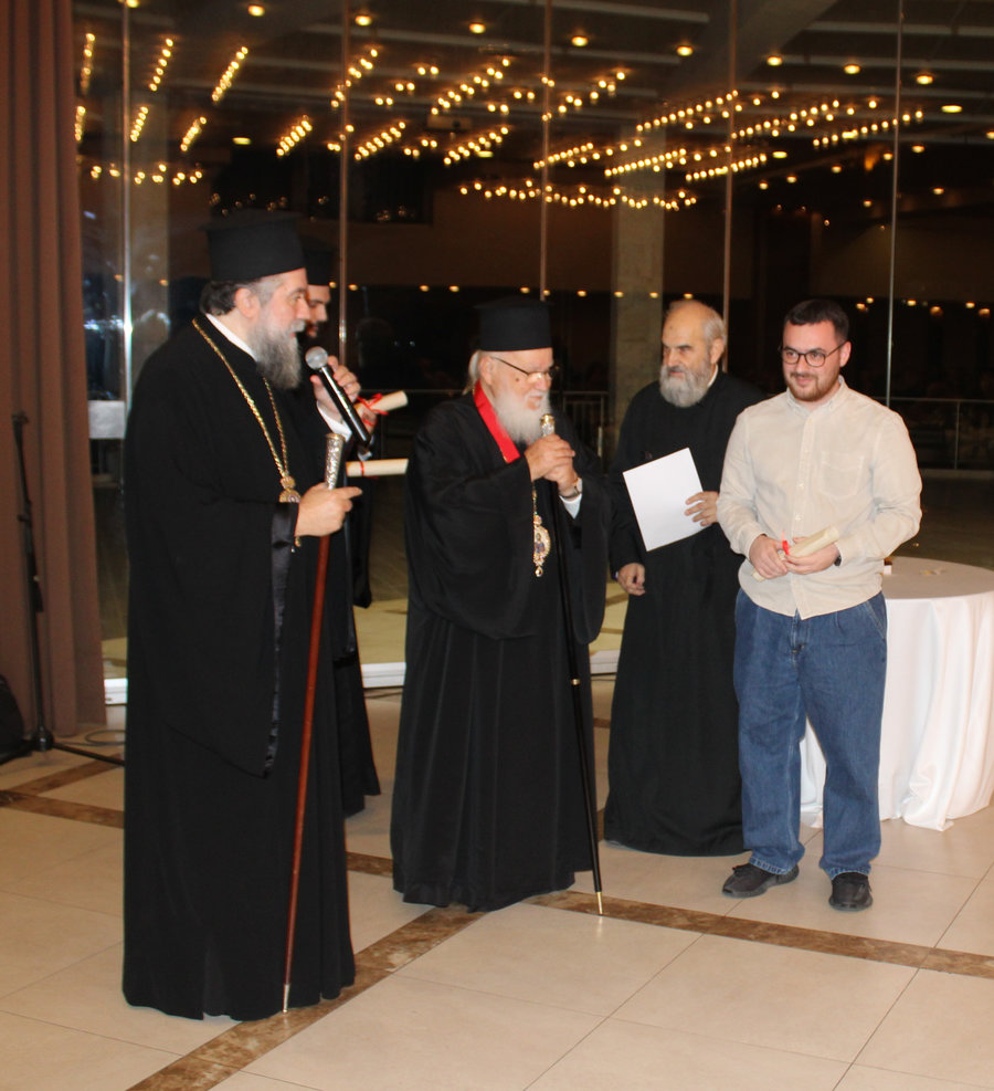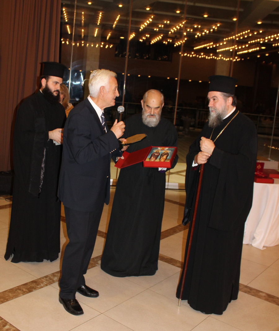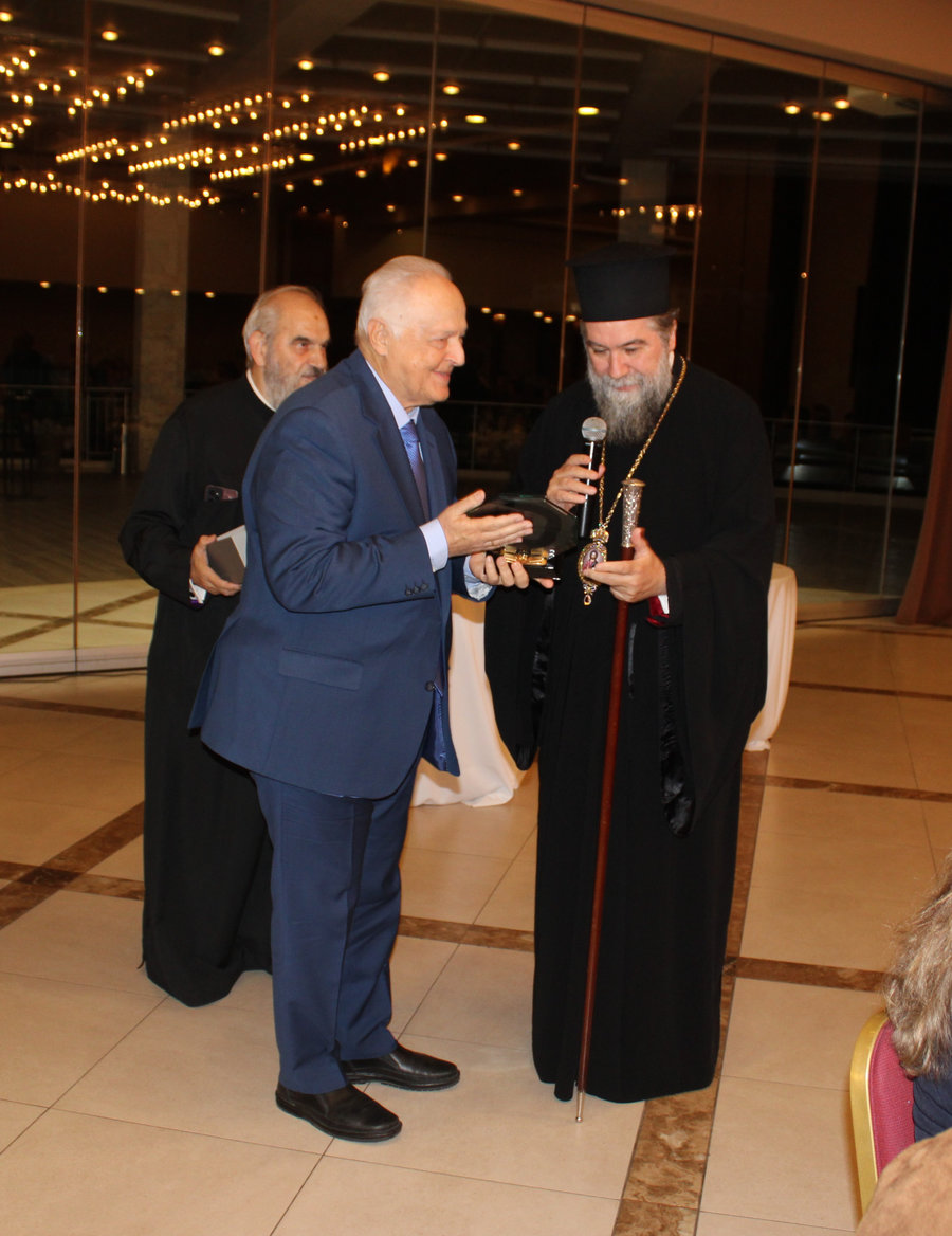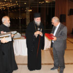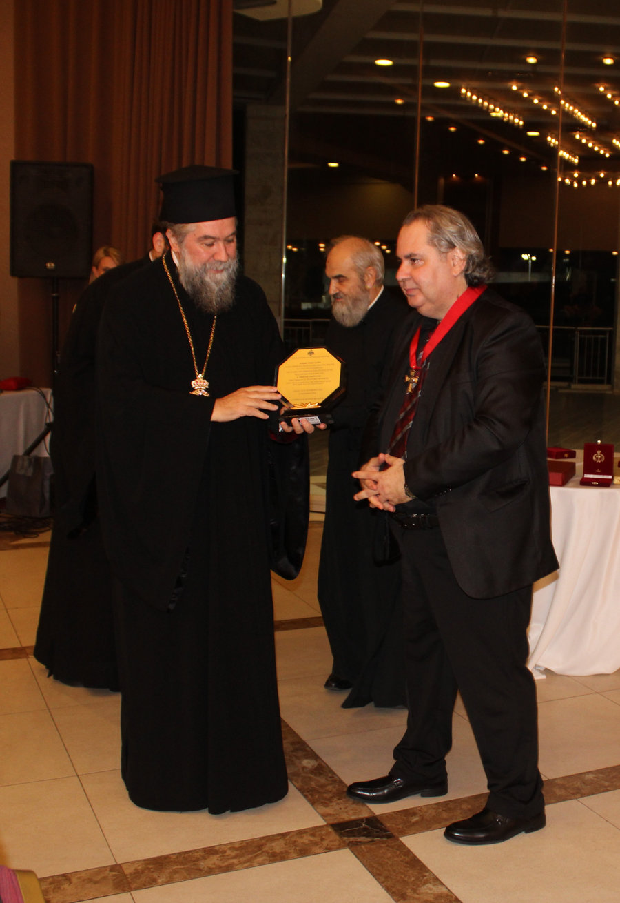 Στην συνέχεια, ο Σεβασμιώτατος απένειμε το επίσημο παράσημο του «ΜΑΞΙΜΕΙΟΥ» και μία ιερά εικόνα των εφόρων και προστατών του Ιδρύματος, οσίων Μαξίμου του ομολογητού και Χριστοδούλου του εν Πάτμω, στον μουσικολογιώτατο κ. Νικόλαο Αμοργιανό, Διευθυντή του εκκλησιαστικού Ωδείου της Ιεράς Μητροπόλεως Πειραιώς, σε ένδειξη ευγνωμοσύνης για την καλή συνεργασία, αλλά και αναγνωρίσεως του σπουδαίου πολιτιστικού έργου, που επιτελείται, υπό την εμπνευσμένη καθοδήγησή και ευλογία του σεπτού Ποιμενάρχου της Πειραϊκής Εκκλησίας κ. Σεραφείμ.