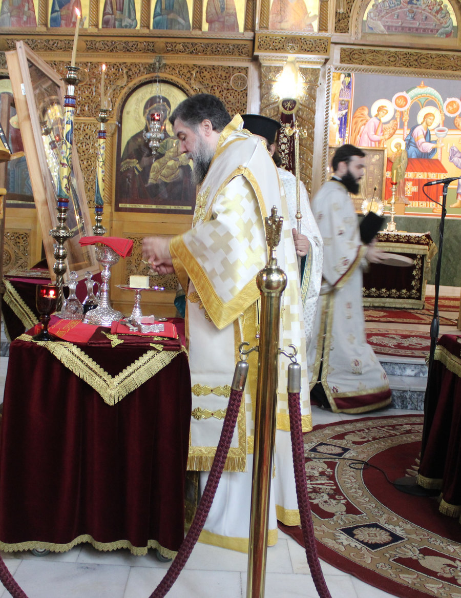 Σήμερα, Κυριακή 9 Νοεμβρίου, ημέρα κατά την οποία, η αγία Μητέρα μας Ορθόδοξος Εκκλησία τιμά λειτουργικώς την μνήμη του Αγ. Νεκταρίου, στον εορτάζοντα ιερό Ναό Αγ. Δημητρίου Σερρών, τελέσθηκε η πανηγυρική Αρχιερατική θ. Λειτουργία, ιερουργήσαντος του Σεβ. Μητροπολίτου Ναζαρέτ κ. Κυριακού, με την πληθωρική συμμετοχή του φιλαγίου λαού του Θεού, που επλήρωσε από νωρίς το πρωί τον ιερό Ναό για να εκκλησιασθεί, να μεταλάβει από το Ποτήριον της Ζωής και να λάβει την ζείδωρη χάρη του θαυματουργού Αγίου. Ο Σεβ. Ποιμενάρχης της Σερραϊκής Εκκλησίας κ. Θεολόγος ιερούργησε στην μεθέορτο, πανηγυρική θ. Λειτουργία, που τελέσθηκε στον λαμπρώς κατ’ αυτάς εορτάσαντα Μητροπολιτικό Ναό Παμμ. Ταξιαρχών Σερρών.