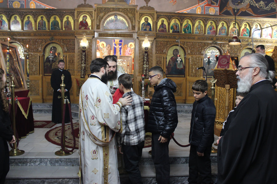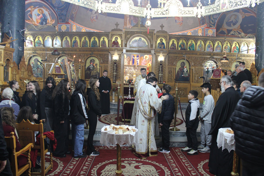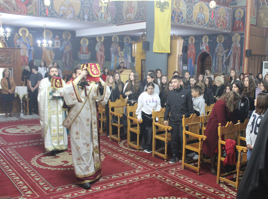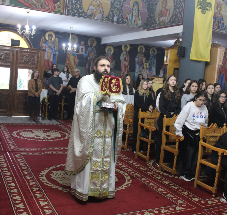 Προϊούσης της θ. Μυσταγωγίας, ο αιδεσιμολ. Πρωτοπρεσβύτερος π. Αναστάσιος Καμπουρίδης, εφημέριος του ιερού Ναού Αγ. Νικήτα Σερρών, υπομνημάτιζε με δυνατό και κατανοητό, θεολογικό λόγο στα παιδιά τα τελούμενα και ανέλυε τον μυστηριακό συμβολισμό τους. Συγκινητική υπήρξε η προσήλωση, αλλά και η βιωματική συμμετοχή των γυμνασιοπαίδων, κατά την διάρκεια της μεταλήψεως των αχράντων μυστηρίων, του Σώματος και του Αίματος του Σωτήρος Χριστού.