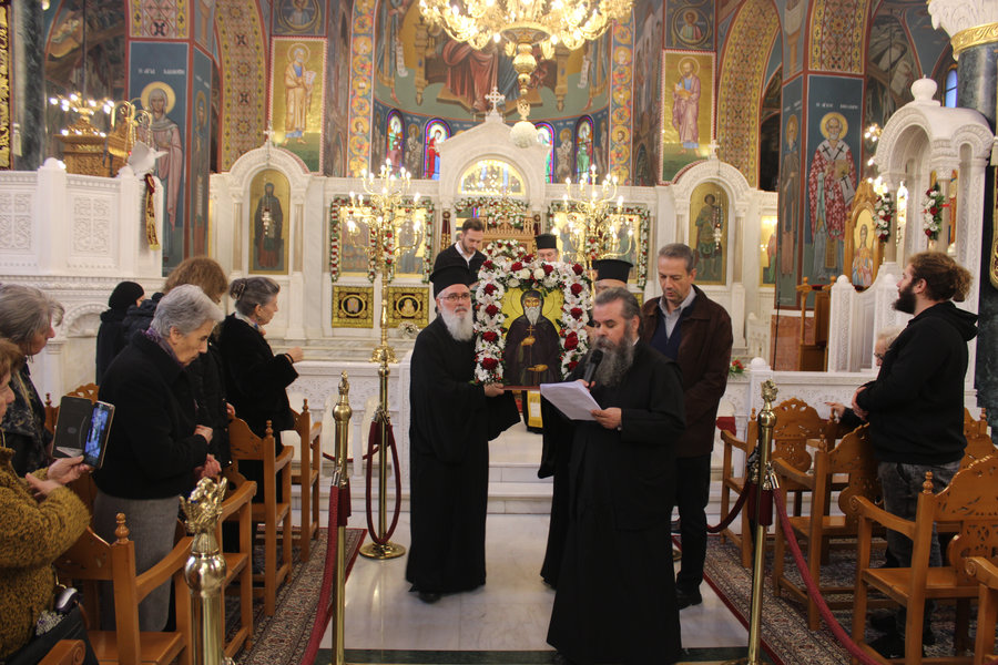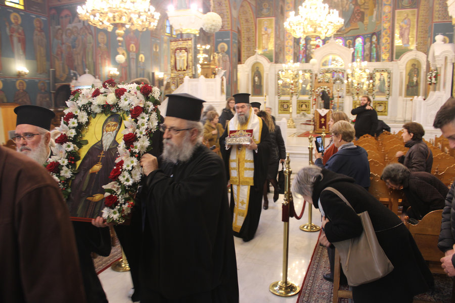 Μετά την ευλόγηση της εόρτιας αρτοκλασίας, τον θείο λόγο εκήρυξε ο Πρόεδρος του εκκλησιαστικού Συμβουλίου του ιερού Ναού, πανοσ. Αρχιμανδρίτης π. Πορφύριος Μπαρμπούτης, αναλύοντας με ωραίο και χριστοκεντρικό τρόπο την σημερινή Ευαγγελική περικοπή της θεραπείας, από τον Κύριό μας Ιησού Χριστό της αιμοροούσης γυναικός και της αναστάσεως της δωδεκαετούς θυγατρός του Ιαείρου. Ο π. Πορφύριος ανέφερε, επίσης, ότι ο σήμερον τιμώμενος Άγ. Νεκτάριος, ο πολύφωτος αστέρας του νοητού στερεώματος της Εκκλησίας, το μυρίπνοο αυτό άνθος του Παραδείσου, υπήρξε, συν τοις άλλοις και διαπρύσιος κήρυκας της μεγάλης αρετής της Ευαγγελικής σιωπής, η οποία, κατά τους ιερούς Πατέρες και την Παράδοση της Εκκλησίας μας, δεν νοείται ως απραξία, αδυναμία, ανικανότητα, αυτοπαραίτηση ή έλλειμμα, αλλά ως πνοή των αγγέλων, γλώσσα του μέλλοντος αιώνος, δύναμη, που έχει φωνή και πλούτο πνευματικό και οδηγεί τον άνθρωπο στην κατά Χριστόν ησυχία, την καθαρότητα, την πραότητα, την γαλήνη.