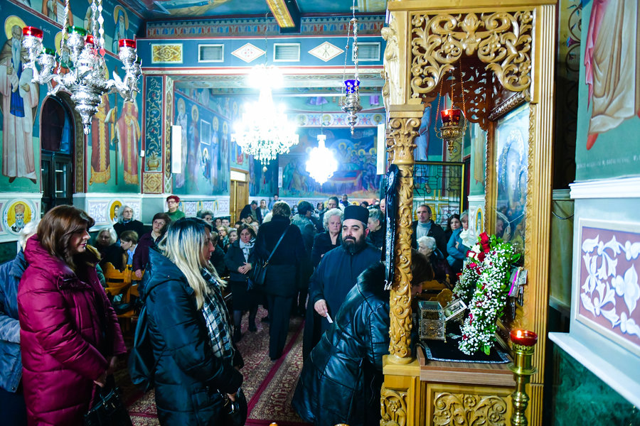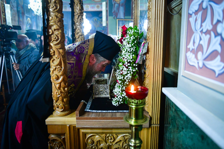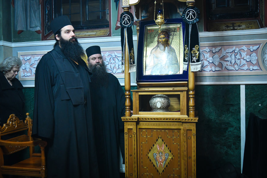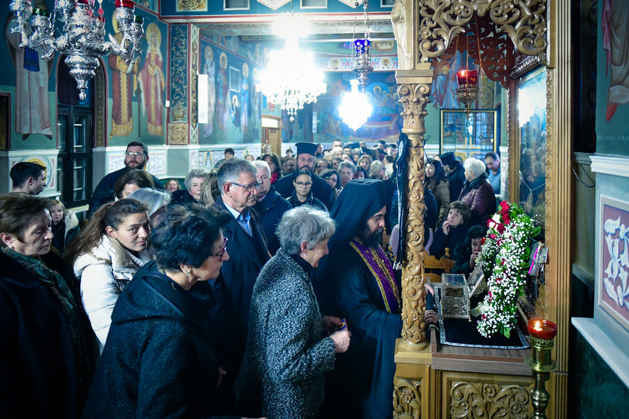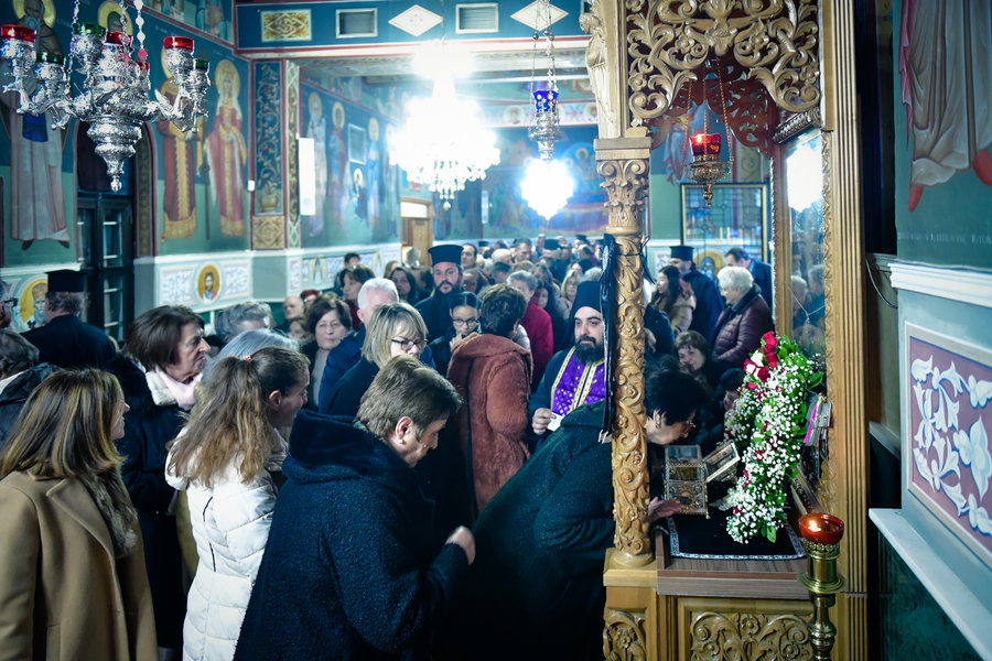 Νωρίς το απόγευμα, είχαν τοποθετηθεί στο κέντρο του ιερού Μητροπολιτικού Ναού, η θαυματουργός βυζαντινή εικόνα του Κυρίου Παντοκράτορος, προερχομένη από το χωρίο των Στεφανινών της εκκλησιαστικής επαρχίας των Σερρών και χαριτόβρυτα αποτμήματα ιερών λειψάνων, προς προσκύνηση και πνευματική ενίσχυση του μεγάλου πλήθους πιστών, που είχε κυριολεκτικώς κατακλύσει τον Μητροπολιτικό Ναό των Σερρών.