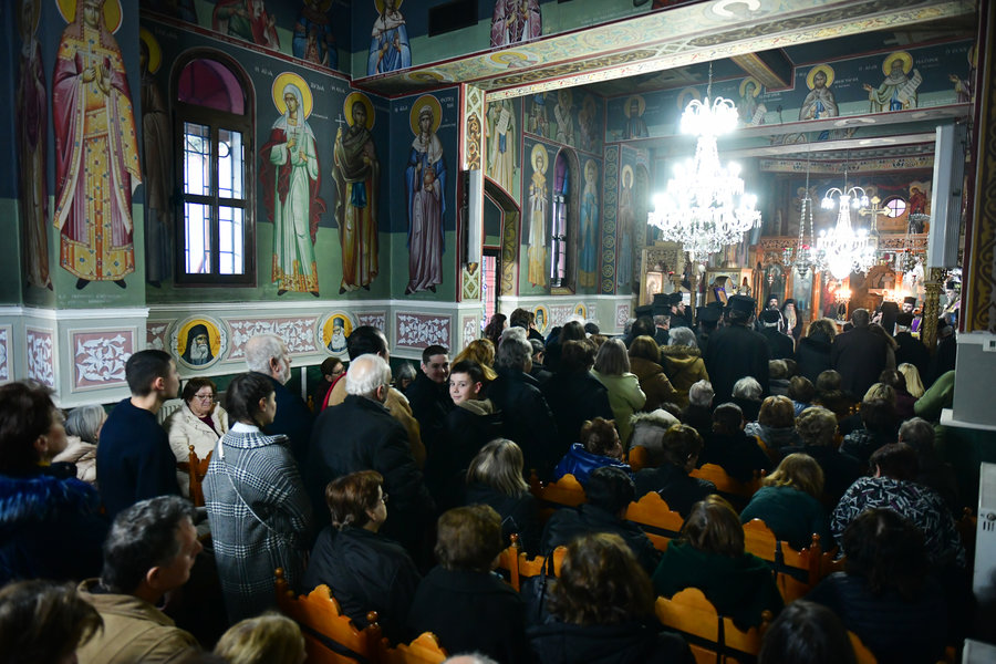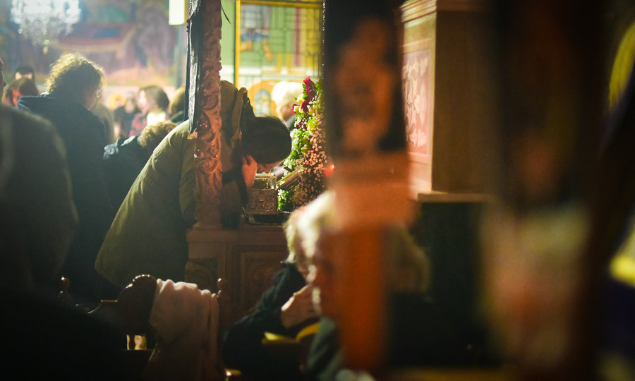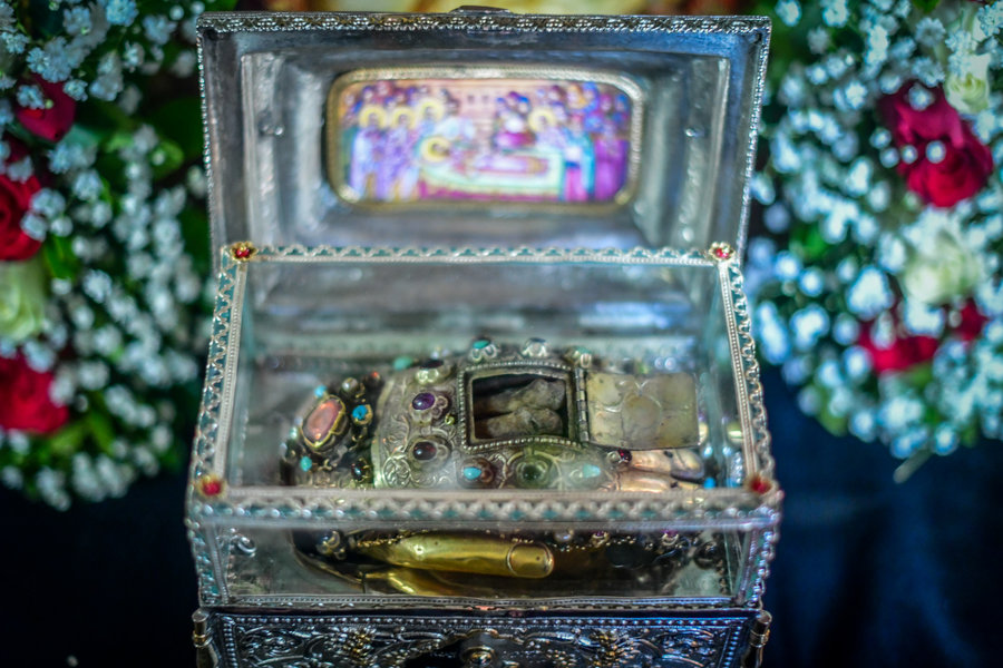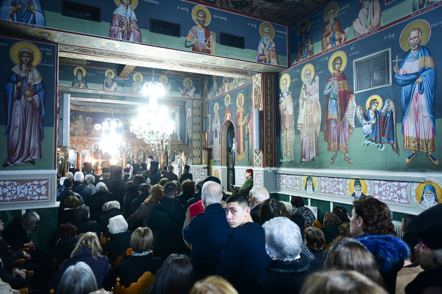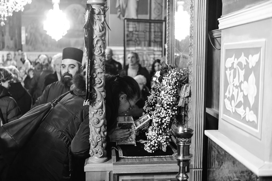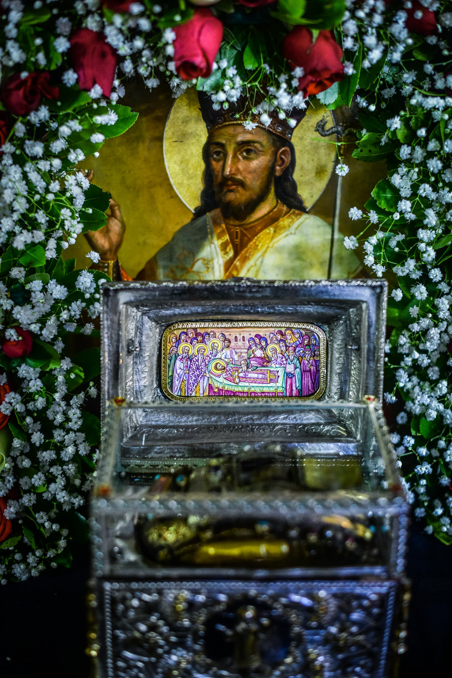 Νωρίς το απόγευμα, είχαν τοποθετηθεί στο κέντρο του ιερού Μητροπολιτικού Ναού, η θαυματουργός βυζαντινή εικόνα του Κυρίου Παντοκράτορος, προερχομένη από το χωρίο των Στεφανινών της εκκλησιαστικής επαρχίας των Σερρών και χαριτόβρυτα αποτμήματα ιερών λειψάνων, προς προσκύνηση και πνευματική ενίσχυση του μεγάλου πλήθους πιστών, που είχε κυριολεκτικώς κατακλύσει τον Μητροπολιτικό Ναό των Σερρών.