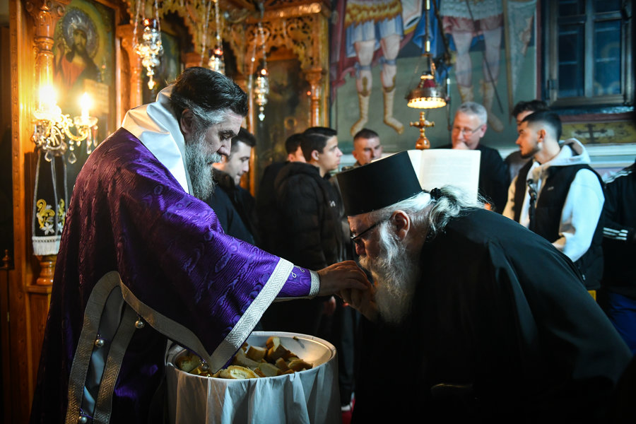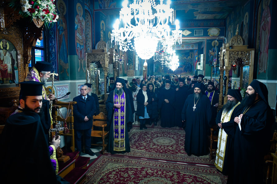 Στο τέλος, αναπέμφθηκε από τον Σεβασμιώτατο, η συγχωρητική ευχή και πραγματοποιήθηκε, κατά το ιερό έθος, ο ασπασμός της συγχωρήσεως, πριν την είσοδο στην αγία και μεγάλη Τεσσαρακοστή.