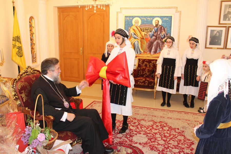 Τα παιδιά ευχαρίστησαν τον πνευματικό τους πατέρα για την δοχή και την διαχρονική του αγάπη και υπέβαλαν τις ευχές τους για τις άγιες ημέρες των αχράντων Παθών και της λαμπροφόρου Αναστάσεως του Κυρίου μας Ιησού Χριστού, προσφέροντας και παραδοσιακά δώρα της ημέρας, αλλά και του αγίου Πάσχα.