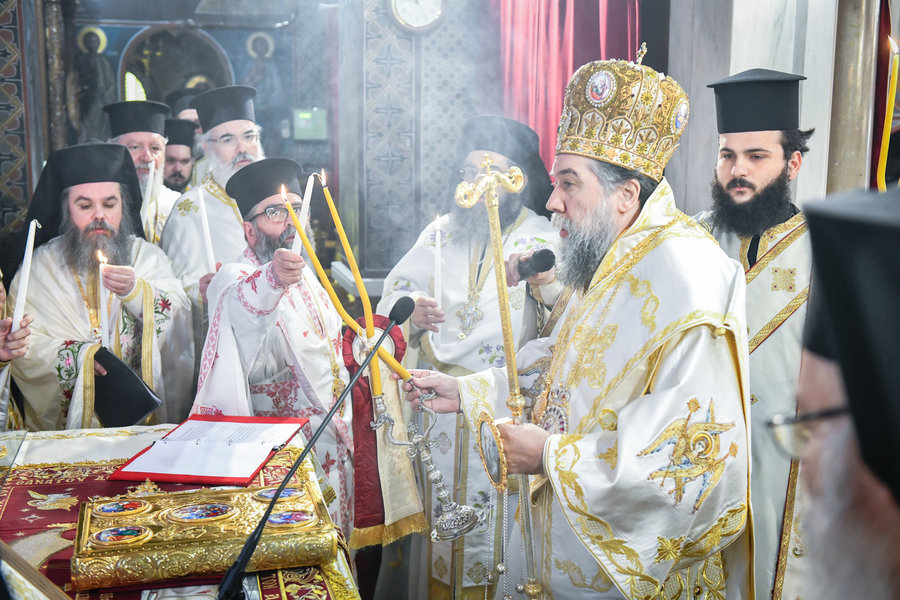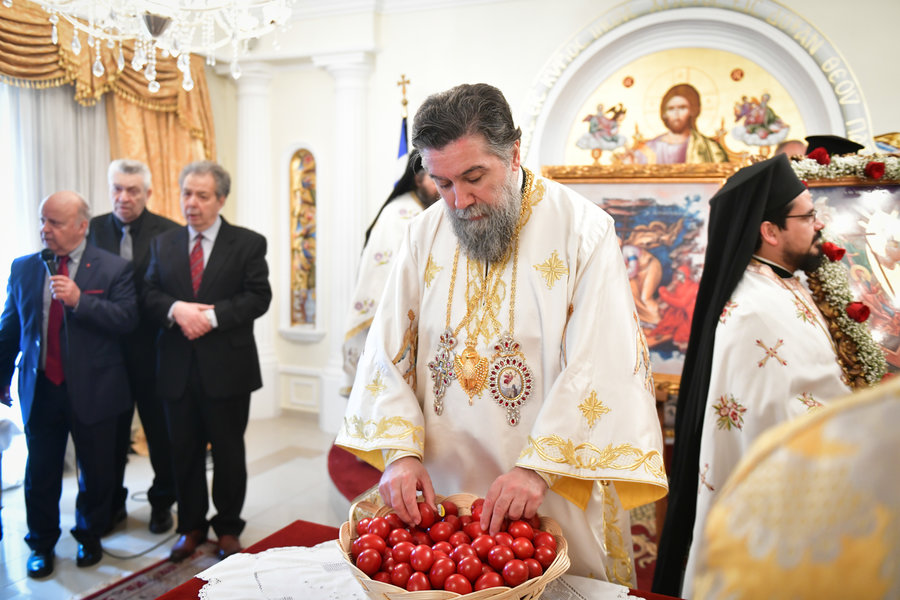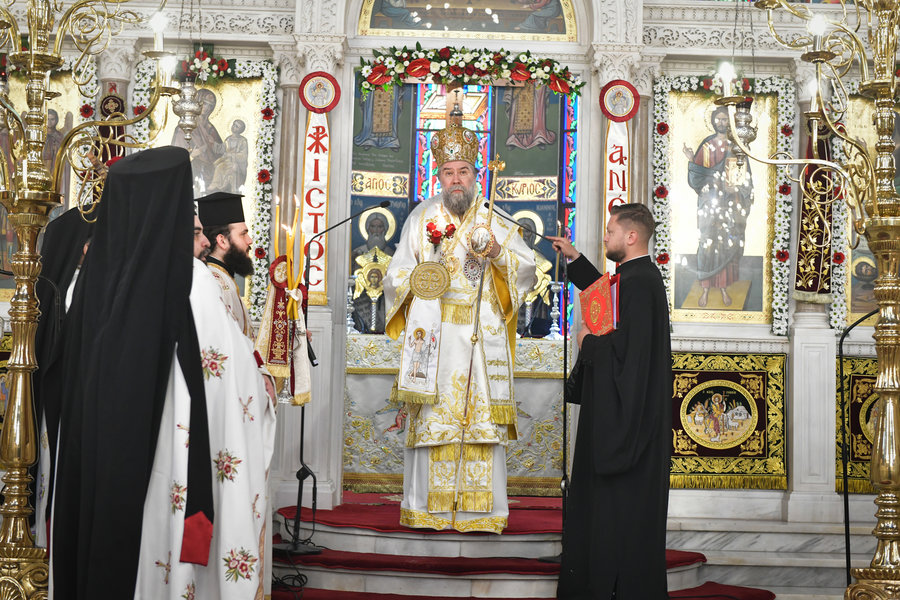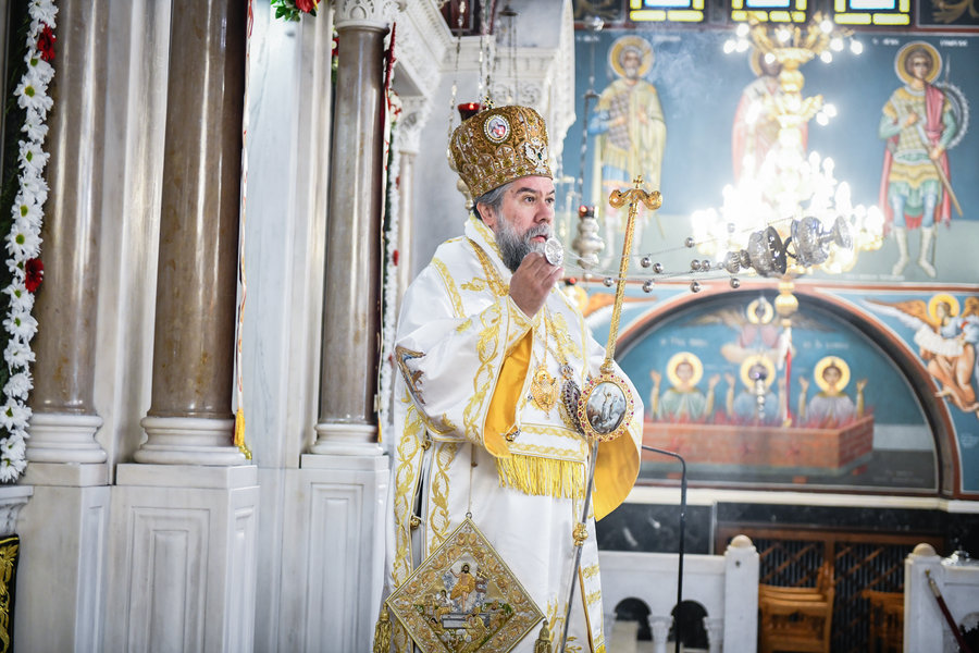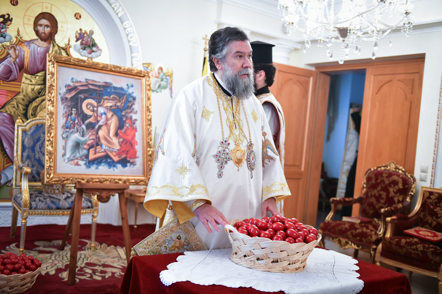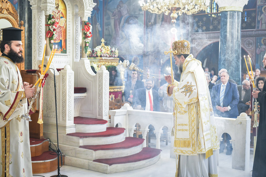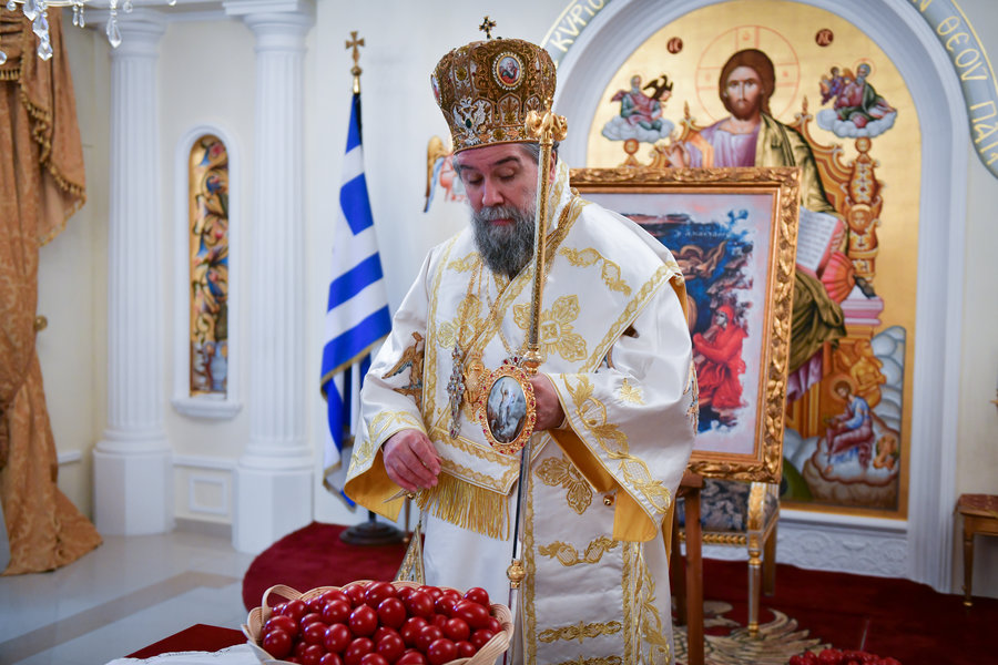 Τέλος, ο Σεβασμιώτατος ευχήθηκε πατρικώς στους συμπροσευχομένους πιστούς, που κατέκλυσαν, από νωρίς το πρωί τον ιερό Μητροπολιτικό Ναό για να εκκλησιασθούν και να μεταλάβουν, από το Ποτήριον της Ζωής, ευλογημένη και ψυχοσωτήριο Ανάσταση.