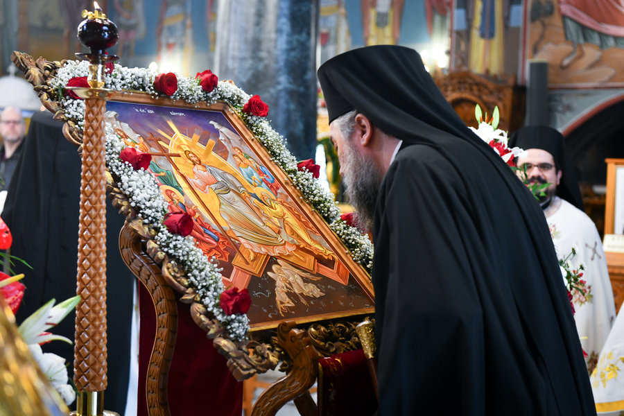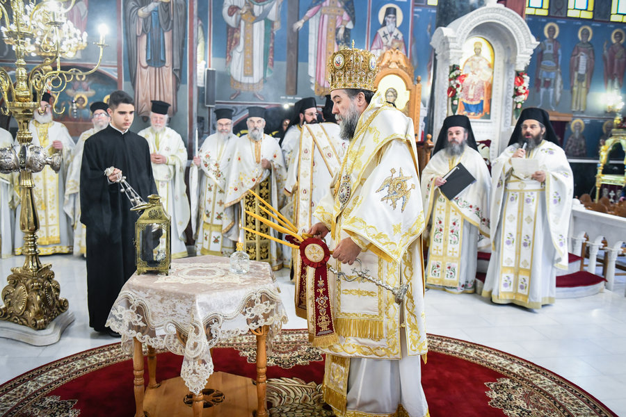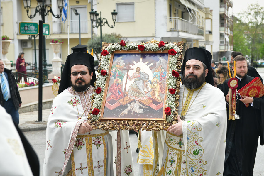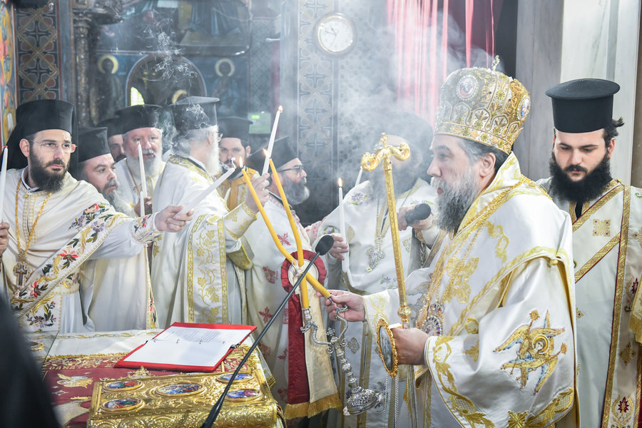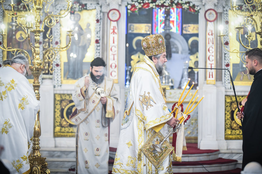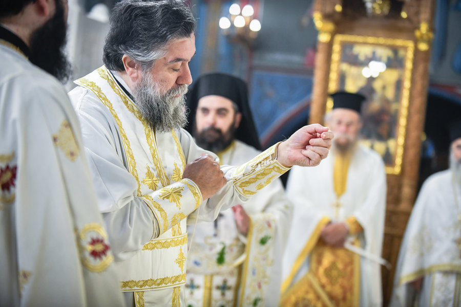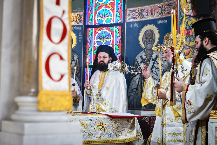 Τέλος, ο Σεβασμιώτατος ευχήθηκε πατρικώς στους συμπροσευχομένους πιστούς, που κατέκλυσαν, από νωρίς το πρωί τον ιερό Μητροπολιτικό Ναό για να εκκλησιασθούν και να μεταλάβουν, από το Ποτήριον της Ζωής, ευλογημένη και ψυχοσωτήριο Ανάσταση.