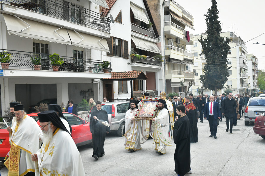 Μετά την έξοδο και την λιτάνευση του ιερού Κουβουκλίου, πραγματοποιήθηκε, στις 9:30 το βράδυ, η καθιερωμένη συνάντηση των Επιταφίων των κεντρικών ιερών Ναών της πόλεως των Σερρών στην πλατεία «ΕΛΕΥΘΕΡΙΑΣ» με την πληθωρική συμμετοχή χιλιάδων πιστού λαού του Θεού.