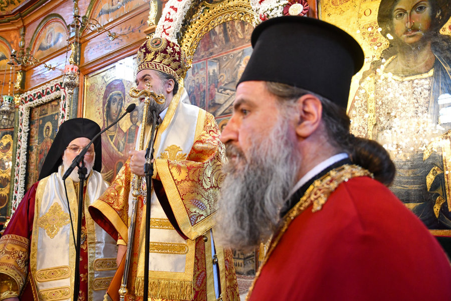 Αυτής της πνευματικής χαρμονής, μέτοχοι και κοινωνοί εγίναμε σήμερον άπαντες, συγχαίροντες και συνεορτάζοντες, τόσο οι Σεβ. αδελφοί Αρχιερείς, όσο και ο ιερός μας Κλήρος, οι Άρχοντες και ο φιλάγιος λαός του Θεού. Τούτο είναι έργον και θέλημα του Ιδίου του Θεού. Εκείνος, πρώτος, επιθυμεί οι θεοφιλείς αρετές της αγάπης και της ενότητος να διέπουν και να χαρακτηρίζουν τις σχέσεις των πιστών, πρωτίστως, εντός της Εκκλησίας. Αυτή η ενότητα είναι η κατάθεση της μαρτυρίας του Σώματος της Εκκλησίας σ’ έναν κόσμο κομματιασμένο, από τις έριδες, τον εγωϊσμό, την φιλαρχία, τα συμφέροντα».