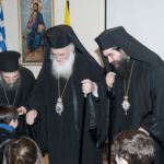 Εκεί συναντήθηκε με τον πρώτο πυρήνα της αρχικής Αδελφότητος. Η υποδοχή υπήρξε εγκάρδια και πολύ συγκινητική, διανθισμένη με λόγους ευγνώμονος ευχαριστίας προς τον σεπτό τους Ποιμενάρχη για το ανύστακτο, διακριτικό και συνεχές ενδιαφέρον, που πατρικώς επιδεικνύει για ολόκληρη την Αδελφότητα, τόσο επί των ημερών του αειμνήστου γέροντός τους π. Θεοφίλου, όσο και κατά τα τελευταία χρόνια.