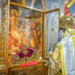 Τα ιερά λείψανά τους, γεμάτα φως, χάρη και αγιοσύνη, είναι δεκτικά αλλά και μεταδοτικά της χάριτος του Θεού και μας διδάσκουν με δυνατές φωνές το μυστήριο της ζωής και της Αναστάσεως, παρέχουν ιάσεις, στηριγμό και ευλογία σε όσους προστρέχουν με πίστη θερμή στην χάρη τους. Έχουμε, λοιπόν, μεσίτες ενδύναμους και φιλόστοργους αδελφούς και πρεσβευτές προς τον Θεόν, οι οποίοι, απολαμβάνουν της ανεσπέρου δόξης Του, απαστράπτουν, ως αστέρες ολόφωτοι στο νοητό στερέωμα της Εκκλησίας μας και ακοιμήτως προσεύχονται υπέρ όλων των ανθρώπων, μάλιστα δε, κατά τον θείον Παύλον, των πιστών ανθρώπων, ως ο σήμερον λαμπρώς εορταζόμενος Άγ. Χαράλαμπος, η μνήμη του οποίου τιμάται σ’ ολόκληρη την πανορθοδοξία, ιδιαιτέρως δε στην Πατρίδα μας, χάριν και στην ειδική χάρη, που έχει λάβει από τον Κύριό μας, να θεραπεύει ανθρώπους, που πάσχουν από λοιμικές ασθένειες.