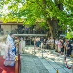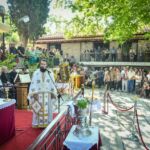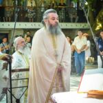 Προ της απολύσεως της θ. Μυσταγωγίας, η οποία τελέσθηκε υπαιθρίως, υπό τον υπεραιωνόβιο ευσκιόφυλλο πλάτανο, στον προαύλιο χώρο της ιεράς Μονής, ο Σεβ. Ποιμενάρχης της των Σερρών και Νιγρίτης Εκκλησίας κ. Θεολόγος, ομίλησε επικαίρως, υπογραμμίζοντας μεταξύ άλλων και τα εξής: