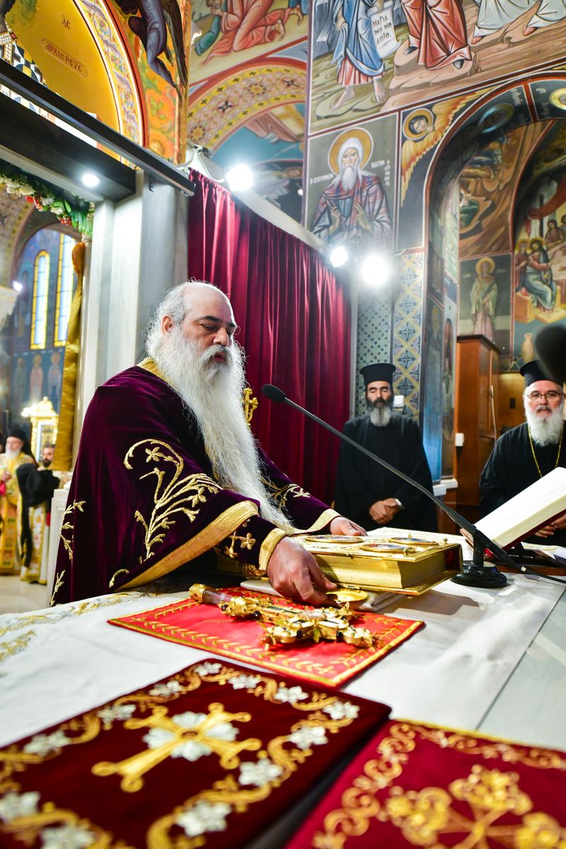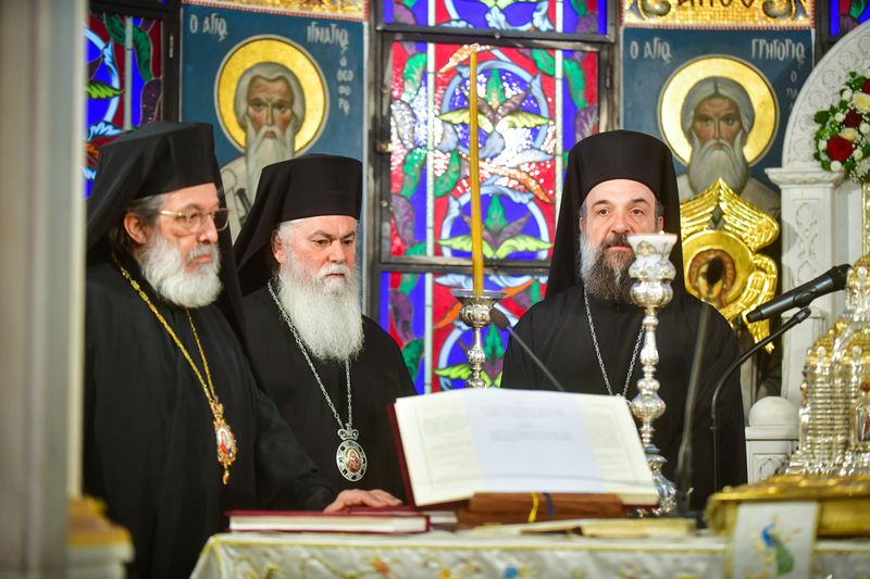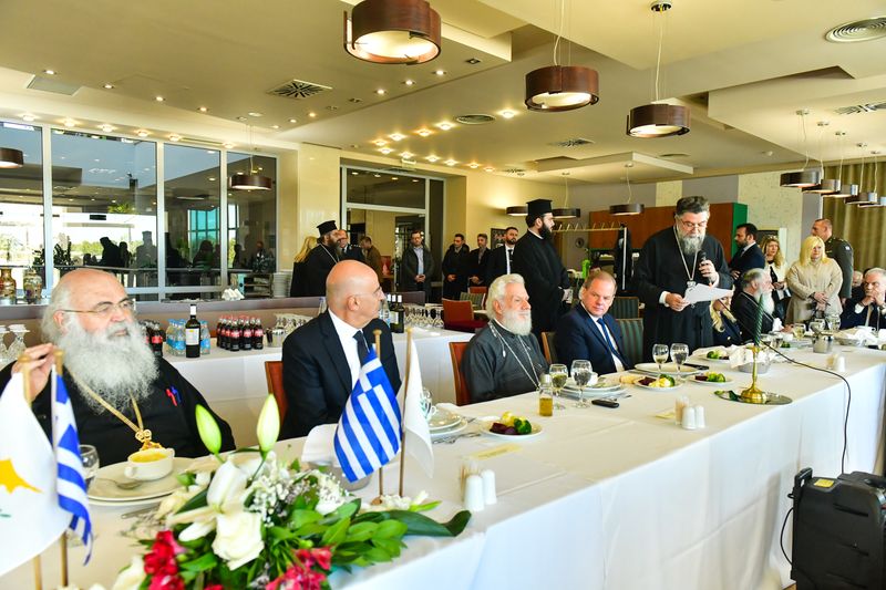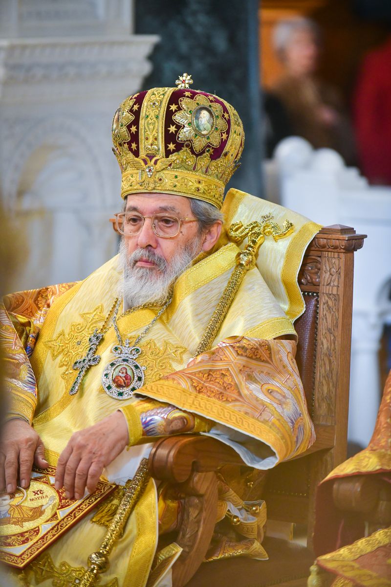 Αντιφωνώντας ο σεπτός Προκαθήμενος της Εκκλησίας της Κύπρου, αφού ευχαρίστησε εγκαρδίως και θερμώς τον Σεβ. κ. Θεολόγο, για την ευγενεστάτη πρόσκλησή του στην εφετεινή πανήγυρη των επουρανίων θείων δυνάμεων Ασωμάτων, αναφέρθηκε, στο μείζον για τον απανταχού Ελληνισμό ζήτημα της Κύπρου, με αφορμή την εφετεινή συμπλήρωση 50 χρόνων (1974-2024), από την βάρβαρη εισβολή και παράνομη κατοχή μεγάλου μέρους της μεγαλονήσου, από τα τουρκικά στρατεύματα κατοχής.