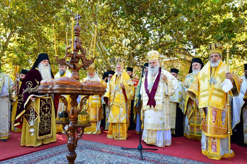Ακολούθως, πραγματοποιήθηκε η λιτάνευση των ιερών εικόνων της Παναγίας «Χοζοβιωτίσσης» και των Παμμ. Ταξιαρχών και η ευλόγηση της εόρτιας αρτοκλασίας στην κεντρική πλατεία «Ελευθερίας» της πόλεως των Σερρών.