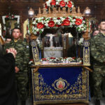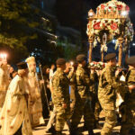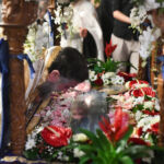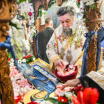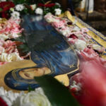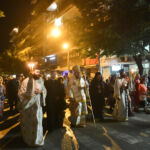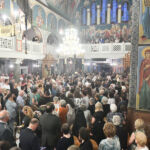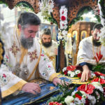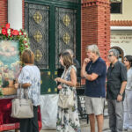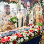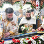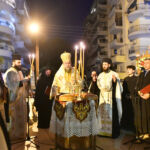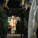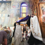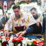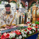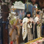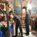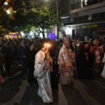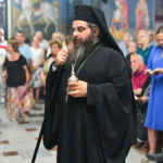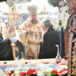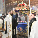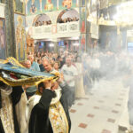 Μετά την ευλόγηση της εόρτιας αρτοκλασίας, ακολούθησε η καθιερωμένη λιτάνευση του ιερού Επιταφίου της επουράνιας πνευματικής Μητέρας μας. Πλήθος ευσεβών πιστών κατέκλυσε τον περικαλλέστατο ιερό Ναό, τόσο εσωτερικά, όσο και τον αύλειο χώρο του, αποδίδοντας οφειλετικώς τις πρέπουσες τιμές, τον καρδιακό σεβασμό και την ευγνωμοσύνη του στην Κυρία Θεοτόκο, που «ουράνωσε» με τον θείο Τόκο Της την γη, ενώ εκατοντάδες Σερραίοι συμμετείχαν στην λιτανεία της εικόνος του Επιταφίου της υπεραγίας Θεοτόκου.