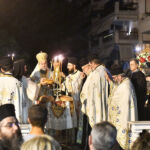 Στην υπερευλογημένη Μητέρα του Θεού αλλά και ιδική μας κατά χάρη Μητέρα, σκέπη και εγγυήτρια της σωτηρίας μας, οφείλουμε αιώνια ευγνωμοσύνη καθώς με την δική Της ισχυρότατη πρεσβευτική και μητρική δύναμη οι πιστοί δεχόμεθα την σώζουσα θεία χάρη και το μέγα έλεος του Θεού. Αυτήν την αγία και φωτοφόρο σκέπη Της επιζητούμε και εμείς όλοι, πάντοτε και ιδιαιτέρως απόψε, την χαριτώνυμο ημέρα της πανσέπτου εορτής Της, που είναι στεφανωμένη με θεία δόξα και τιμή, κατακλύζοντες τις Εκκλησίες Της και ψάλλο­ντες από τα βάθη της καρδιάς μας προς Εκείνη ύμνους ευχαριστίας και ωδές ευγνωμοσύνης. Ας προπέμψουμε, αδελφοί μου χριστιανοί, με άσβεστες ελπίδες την ακοίμητη Μεσίτρια του κόσμου στην ουράνια κατοικία Της. Ας καταφιλήσουμε με ευγνωμοσύνη απέραντη νοερώς το θεολαμπές μητρικό Της σκήνωμα, παρακαλώντας την δεδοξασμένη Παντάνασσα, από την άφθονον εκείνην ηλιοβολίαν του θείου φωτός, όπου Εκείνη χαίρεται παρισταμένη εκ δεξιών του Μονογενούς Της Υιού στην αιώνια Βασιλεία Του, να στείλει και σε εμάς τα πνευματικά Της παιδιά μίαν μακαρίαν ακτίνα χάριτος, ευλογίας και παρακλήσεως. Ας Την ικετεύσουμε να μας αξιώσει, καθώς εδώ στον Ναό Της ευλαβώς κατασπαζόμεθα την αγία και σεπτή Της εικόνα, έτσι και εκεί, στον Παράδεισο να δούμε, χαίροντες και λάμποντες την καλήν και ευπρεπεστάτην αλλοίωσιν, το ολόφωτό Της πρόσωπο, δοξάζοντες μαζί Της, λατρευτικώς και προσκυνητώς τον άναρχο Πατέρα, τον συνάναρχο Υιόν και το Πανάγιον Πνεύμα, την αδιαίρετον και άκτιστον Θεότητα, την ομοούσιον Τριάδα, την βασιλεύουσαν εις αιώνα αιώνος. Χρόνια πολλά και ευλογημένα! Η χάρις του εκ της αγίας Θεοτόκου τεχθέντος Σωτήρος Ιησού Χριστού ας επισκιάζει πλουσίως την ζωήν όλων μας. Αμήν!».