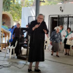 Λίγο πριν το γεύμα, οι συμμετέχοντες στην Ημερίδα, κατευθύνθηκαν προς τον τάφο του αειμνήστου ιδρυτού της Αδελφότητος, μακαριστού π. Θεοφίλου, εμπνευστού των ευλογημένων αυτών συναντήσεων και πρωτοπόρου οραματιστού έργων ορθοδόξου ιεραποστολής, όπου τελέσθηκε ιερό τρισάγιο, υπέρ αναπαύσεως της μακαρίας ψυχής του.