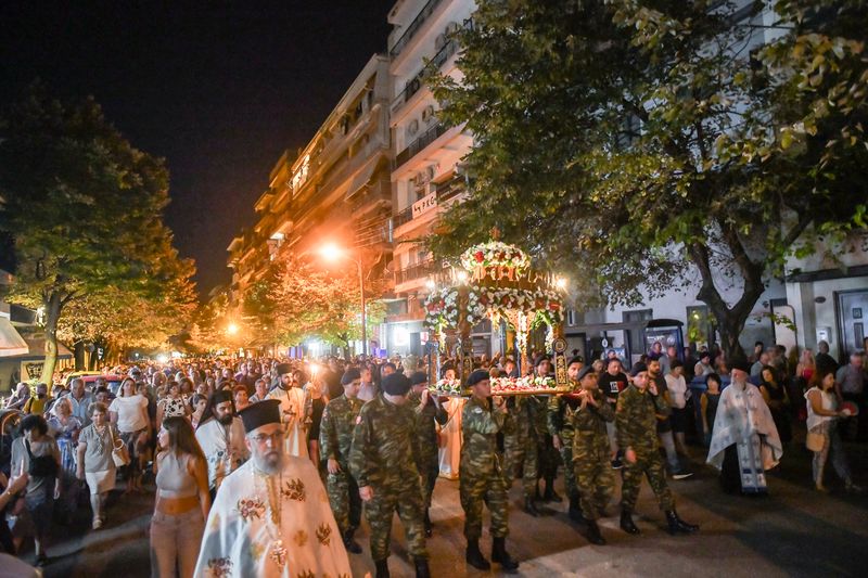 Μετά την ευλόγηση της εόρτιας αρτοκλασίας, ακολούθησε η καθιερωμένη λιτάνευση του ιερού Επιταφίου της επουράνιας πνευματικής Μητέρας μας. Πλήθος ευσεβών πιστών κατέκλυσε τον περικαλλέστατο ιερό Ναό, τόσο εσωτερικά, όσο και τον αύλειο χώρο του, αποδίδοντας οφειλετικώς τις πρέπουσες τιμές, τον καρδιακό σεβασμό και την ευγνωμοσύνη του στην Κυρία Θεοτόκο, που «ουράνωσε» με τον θείο Τόκο Της την γη, ενώ εκατοντάδες Σερραίοι συμμετείχαν στη λιτανεία της εικόνος του Επιταφίου της Υπεραγίας Θεοτόκου.