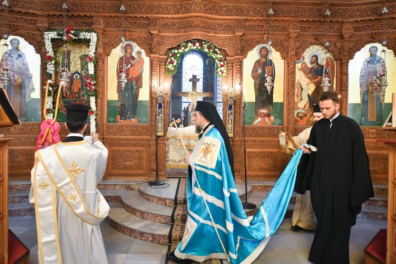 Ἄς προσέλθουμε καί ἐμεῖς ὅλοι μέ πραγματική εὐλάβεια, σεβασμό καί εὐγνωμοσύνη γιά νά τιμήσουμε καθηκόντως Ἐκείνη, πού στολισμένη μέ θεία δόξα ἕνωσε τόν οὐρανόν καί τήν γῆν μέ τόν θεῖον τόκον Της, μετά τοῦ θείου Ἰωάννου τοῦ Δαμασκηνοῦ πρός Αὐτήν ἐκ καρδίας λέγοντες: ‘’Στρέψε τό βλέμμα πρός ἐμᾶς, εὐγενική Δέσποινα, Μητέρα τοῦ καλοῦ Δεσπότη· κυβέρνα καί κατεύθυνε ὅ,τι μᾶς ἀφορᾶ μέ τή διακριτικότητα Σου, συγκρατώντας τίς πτώσεις μας, ὁδηγώντας μας στό χωρίς τρικυμίες λιμάνι τῆς θείας θέλησης, θεωρώντας μας ἀξίους τῆς μέλλουσας μακαριότητας, τοῦ γλυκοῦ φωτισμοῦ μπροστά στό Λόγο – Υἱό τοῦ Θεοῦ, πού ἀπό Σένα πῆρε σάρκα’’.