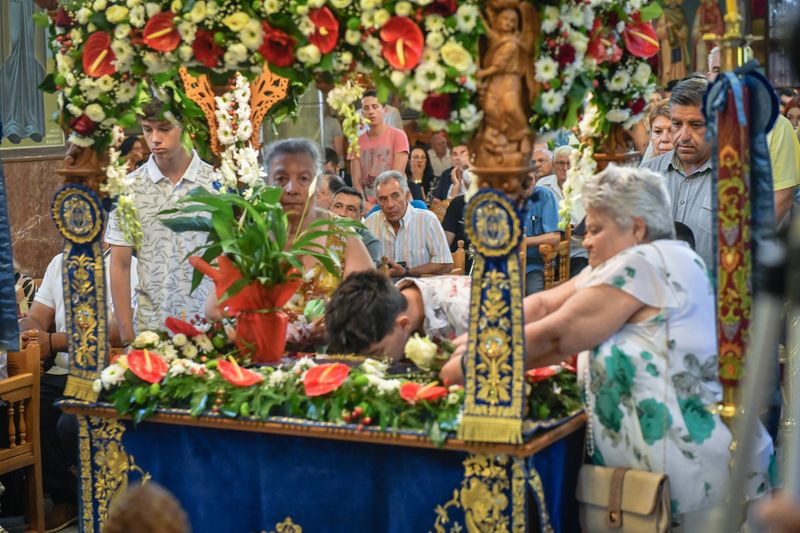 Σήμερα, Πέμπτη, 15 Αυγούστου, τελέσθηκε η πανηγυρική θ. Λειτουργία, στον ως είρηται εορτάζοντα ιερό Ναό, ιερουργούντος του Σεβ. Μητροπολίτου Σερρών και Νιγρίτης κ. Θεολόγου, με την συμπροσευχητική παρουσία, μεταξύ άλλων και των Βουλευτών Σερρών κ. κ. Φ. Αραμπατζή και Θ. Λεονταρίδη, εκπροσώπων των Στρατιωτικών, Αστυνομικών και Πολιτικών αρχών της πόλεως και του Νομού, καθώς και του εκ Σερρών καταγομένου Ολυμπιονίκη στο άθλημα της κωπηλασίας κ. Π. Γκαϊδατζή και μέγα πλήθους λαού του Θεού, που προσήλθαν για να λάβουν την χάρη της Υπεραγίας Θεοτόκου.