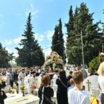 Ακολούθως, στις 12:30 μ.μ., στον χώρο έμπροσθεν του ιερού Ναού Ζωοδόχου Πηγής του Β’ Κοιμητηρίου Σερρών, τελέσθηκε η ιερά ακολουθία του Επιταφίου θρήνου, κατά την διάρκεια της οποίας, ο χοροστατών Σεβ. κ. Θεολόγος, ανέπεμψε ειδική δέηση, υπέρ αναπαύσεως των ψυχών και των εκ της νόσου Covid-19, κεκοιμημένων αδελφών μας, οι οποίοι αναπαύονται στο ως είρηται Κοιμητήριο και ακολούθως πραγματοποιήθηκε η εντός του Κοιμητηρίου λιτάνευση του Επιταφίου.