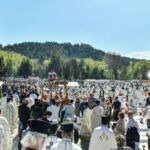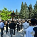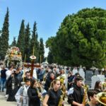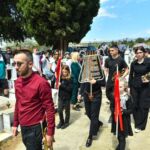 Στις 3:00 μ.μ., ο Σεβ. κ. Θεολόγος μετέβη στο Α’ Κοιμητήριο Σερρών, όπου επί του ειδικώς διαμορφωμένου υπερώου, επάνω ακριβώς από το οστεοφυλάκιο, μαζί με τον ιερό Κλήρο της πόλεως, ετέλεσαν την ιερά ακολουθία της Αποκαθηλώσεως και έψαλαν τα εγκώμια. Εν συνεχεία, το αποκαθηλωθέν «Σώμα» του Κυρίου μας οδηγήθηκε λιτανευτικώς στο πλησίον του υπερώου λελατομημένο εκ πέτρας κενοτάφιο. Προ της απολύσεως, ο Σεβασμιώτατος ευχήθηκε, υπέρ μακαρίας και αιωνίου αναπαύσεως των ψυχών όλων των κεκοιμημένων αδελφών μας, οι οποίοι, όπως χαρακτηριστικώς ετόνισε, αναμένουν την κοινή Ανάσταση, λουσμένοι στο ανέσπερο Φως της αιωνιότητος, που μόνον ο Χριστός, η Ανάσταση και η Ζωή μας χαρίζει.