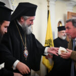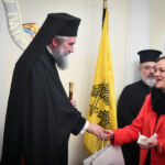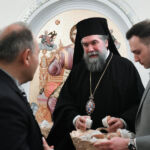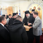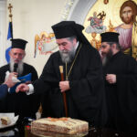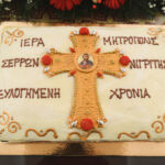 Στη συνέχεια, ο Σεβασμιώτατος διένειμε σε όλους τα ευλογημένα τεμάχια της Αγιοβασιλειόπιτας, τα φλουριά της οποίας έλαχαν η Δήμαρχος Σερραίων κ. Βαρβάρα Μητλιάγκα και ο Πρόεδρος της Ο.Ε.Β.Ε.Σ. Ν. Σερρών κ. Σωτήριος Κοτσαμπάς, οι οποίοι έλαβαν, από τον Σεβασμιώτατο, ως ευλογία, ακριβές αντίγραφο της Παναγίας «ΠΟΝΟΛΥΤΡΙΑΣ», της Οποίας το χαριτόβρυτο και θαυματουργό, ανάγλυφο εικόνισμα (11ος μ.Χ. αιών) φυλάσσεται στον ιερό Καθεδρικό και Προσκυνηματικό Ναό Αγ. Θεοδώρων Σερρών καθώς και επετειακό πινάκιο, διασώζον την εξέχουσα και εμβληματική προσωπικότητα του μεγάλου Σερραίου Αρχιστρατήγου και πρωτεργάτου της εθνικής παλιγγενεσίας του 1821 στην μαρτυρική Μακεδονία, Εμμ. Παπά.