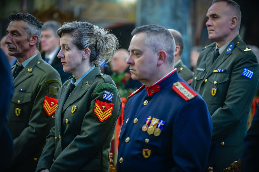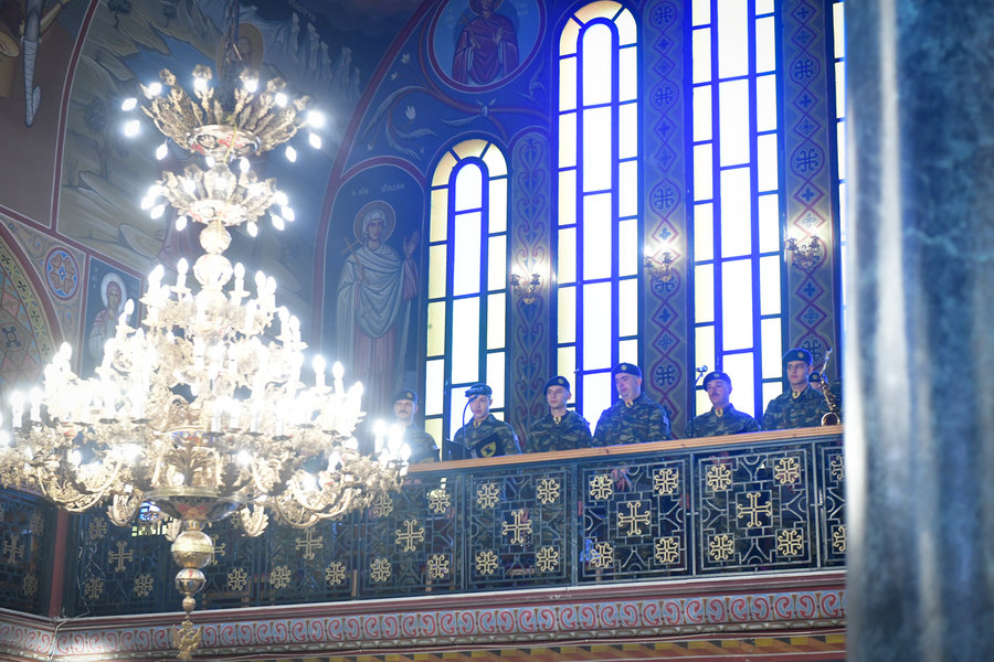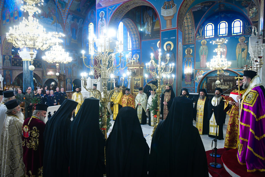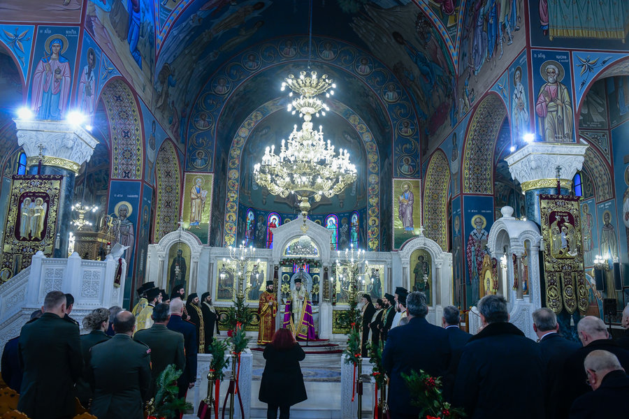 Σε άλλο σημείο του λόγου του, ο Σεβασμιώτατος ευχήθηκε πατρικώς στον ένδοξο ελληνικό Στρατό της Πατρίδος μας, να στέκεται πάντοτε δυνατός επί των επάλξεων, έτσι ώστε να διαφυλάσσει το πολυτίμητο αγαθό της ειρήνης. Ο Σεβασμιώτατος ευχήθηκε, επίσης, υπέρ της αμέσου καταπαύσεως των εχθροπραξιών, όπου γης, παρακλήσεως και στηρίξεως των χειμαζομένων εκ της φρίκης των πολέμων και επικρατήσεως της ειρήνης, της καταλλαγής, της δικαιοσύνης, της ψυχραιμίας και της αμοιβαίας κατανοήσεως μεταξύ των λαών. «Ο πόλεμος, είπε, είναι μία πραγματική τραγωδία, ένας παραλογισμός αναιρετικός του θείου θελήματος και της ανθρωπίνης αξίας».