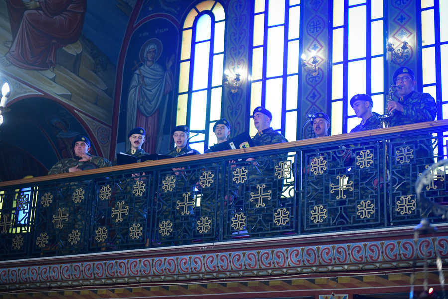 Τέλος, η στρατιωτική Χορωδία της 10ης Μηχανοποιημένης Ταξιαρχίας, έψαλλε παραδοσιακά κάλαντα και πρωτοχρονιάτικα ψαλτοτράγουδα, δίδοντας έναν ιδιαίτερο χαρακτήρα εόρτιας ευφροσύνης, που όλοι οι παριστάμενοι χάρηκαν. «Είναι εξαιρετική τιμή και ακριβό προνόμιο, να υπηρετείτε την πολυαγαπημένη Πατρίδα μας , την Ελλάδα», είπε ο Σεβασμιώτατος, ευχαριστώντας τον κ. Διοικητή και τους στρατιώτες της Ταξιαρχίας για τον επιδεικνυόμενο πάντοτε σεβασμό προς την Μητέρα Εκκλησία, ευχόμενος στον μεν κ. Λιάμπα την εξ ύψους ενίσχυση στα πολυεύθυνα καθήκοντά του, στους δε στρατιώτες καλή θητεία και κάθε προκοπή στην ζωή τους.