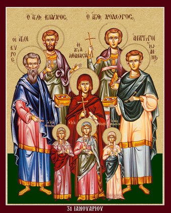 Οἱ Ἅγιοι Κῦρος καὶ Ἰωάννης οἱ Ἀνάργυροι, καὶ ἡ Ἁγία Ἀθανασία μὲ τὶς τρεῖς θυγατέρες της Θεοδότη, Θεοκτίστη καὶ Εὐδοξία