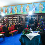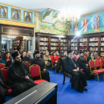 Ακολούθως, στις 6:30 το απόγευμα, έλαβε χώρα η Σύναξη επιμορφωτικού χαρακτήρος για τους υπευθύνους ιερείς, τις κατηχήτριες και τους κατηχητές των ενοριακών συνάξεων της Εκκλησίας των Σερρών, με αφορμή τον επί θύραις εορτασμό της του Χριστού γεννήσεως, στην αίθουσα «ΑΡΧΙΕΠΙΣΚΟΠΟΣ ΧΡΙΣΤΟΔΟΥΛΟΣ» της εκκλησιαστικής Βιβλιοθήκης «ΜΥΡΙΟΒΙΒΛΟΣ» του «ΜΑΞΙΜΕΙΟΥ» Πνευματικού και Πολιτιστικού Κέντρου.