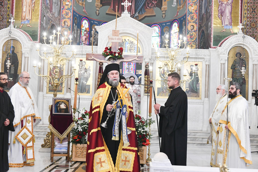 Προ της αναγνώσεως του ιερού Ευαγγελίου της Αποκαθηλώσεως, στον εμπνευσμένο, από το ιε’ Αντίφωνο της ακολουθίας των αχράντων Παθών του Κυρίου μας: «Τάδε λέγει Κύριος τοῖς Ἰουδαίοις· Λαός μου, τί ἐποίησά σοι ἤ τί σοι παρηνώχλησα; τούς τυφλούς σου ἐφώτισα, τούς λεπρούς σου ἐκαθάρισα, ἄνδρα ὄντα ἐπί κλίνης ἠνωρθωσάμην. Λαός μου, τί ἐποίησά σοι, καί τί μοι ἀνταπέδωκας; Ἀντί τοῦ μάννα χολήν∙ ἀντί τοῦ ὕδατος ὄξος· ἀντί τοῦ ἀγαπᾶν με σταυρῷ με προσηλώσατε…», διδακτικότατο λόγο του, ο Σεβασμιώτατος ανέφερε μεταξύ άλλων και τα εξής:
