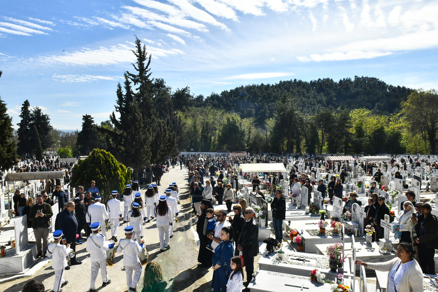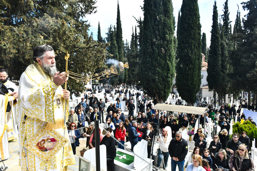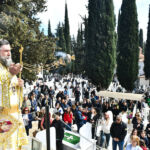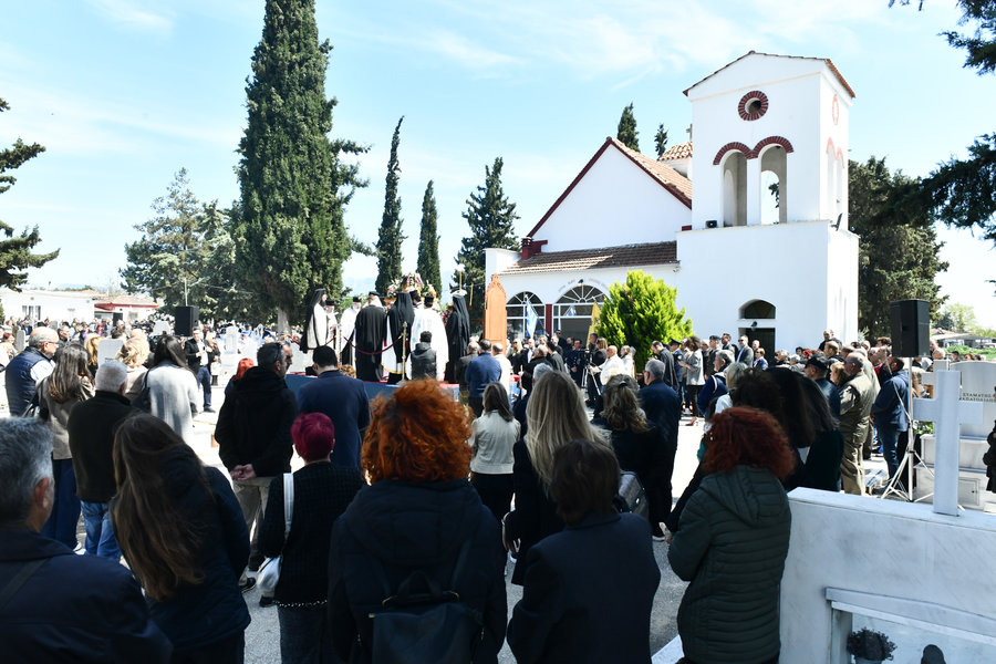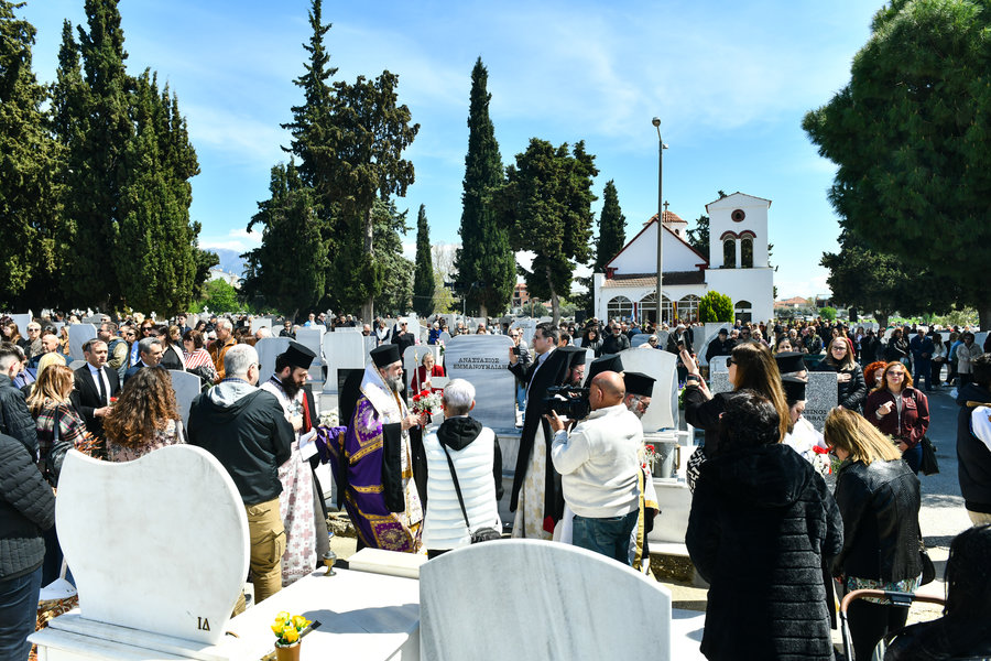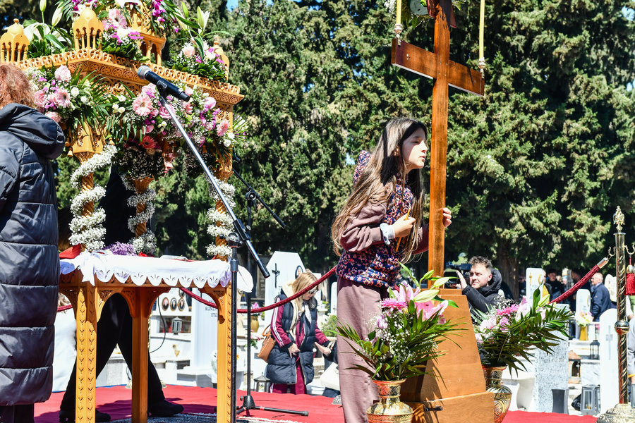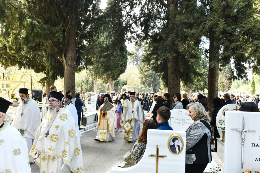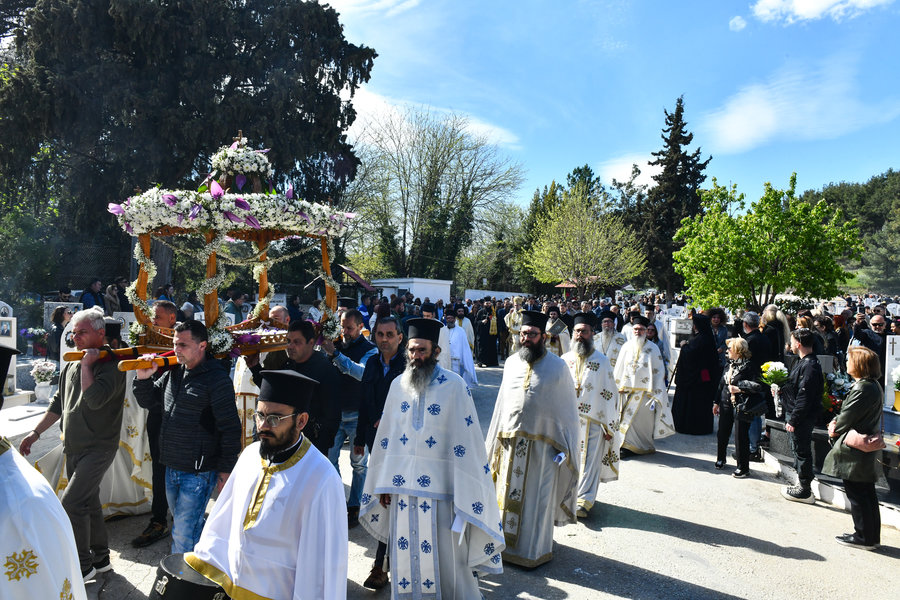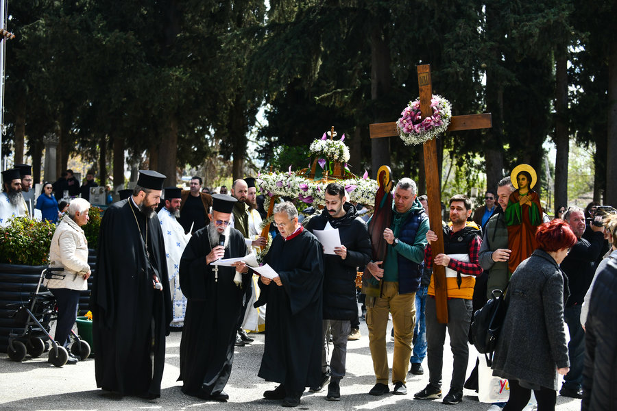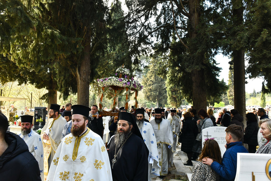Ακολούθως, στις 12:30 μ.μ., στον χώρο έμπροσθεν του ιερού Ναού Ζωοδόχου Πηγής του Β’ Κοιμητηρίου Σερρών τελέσθηκε η ιερά ακολουθία του Επιταφίου θρήνου κατά την διάρκεια της οποίας ο χοροστατών Σεβ. κ. Θεολόγος ανέπεμψε ειδική δέηση υπέρ αναπαύσεως των ψυχών και των εκ της νόσου Covid-19 κεκοιμημένων αδελφών μας, οι οποίοι αναπαύονται στο ως είρηται Κοιμητήριο και ακολούθως πραγματοποιήθηκε η εντός του Κοιμητηρίου λιτάνευση του Επιταφίου.