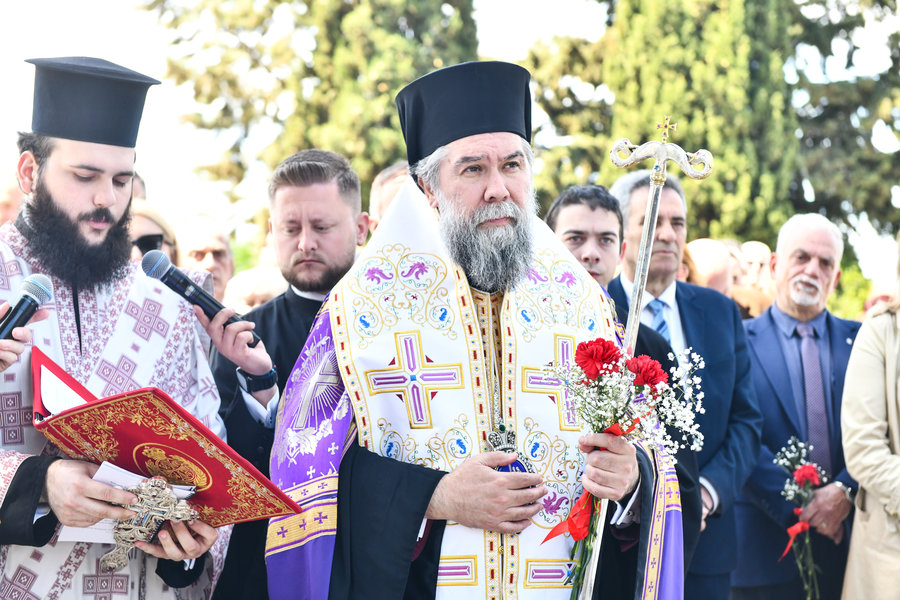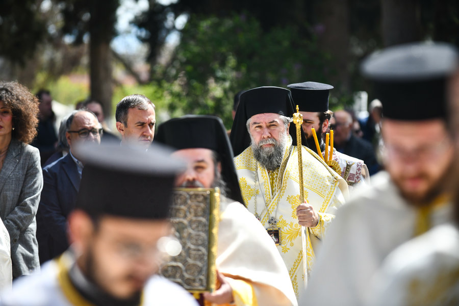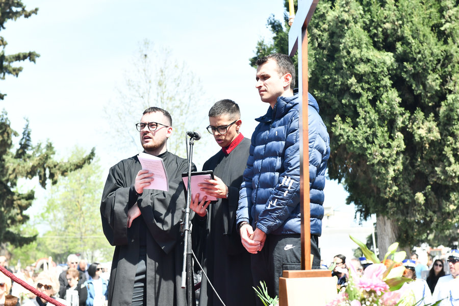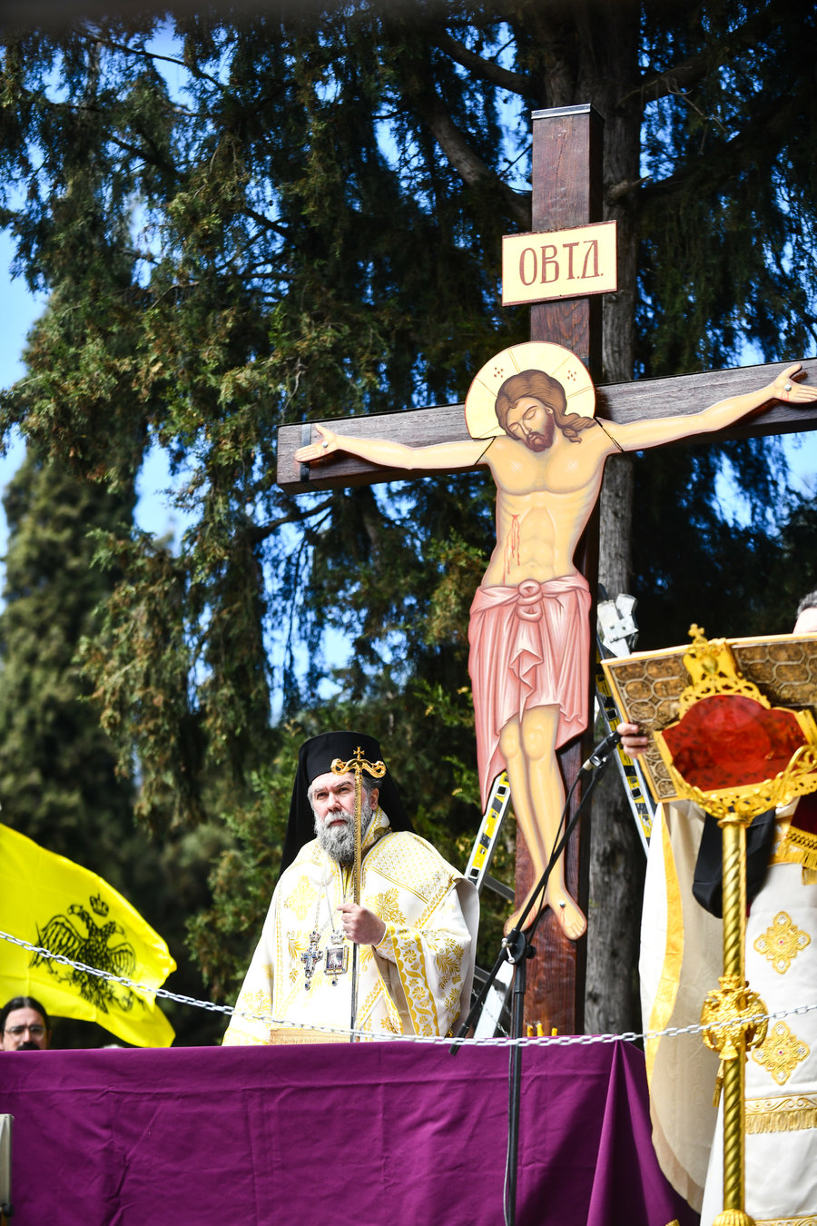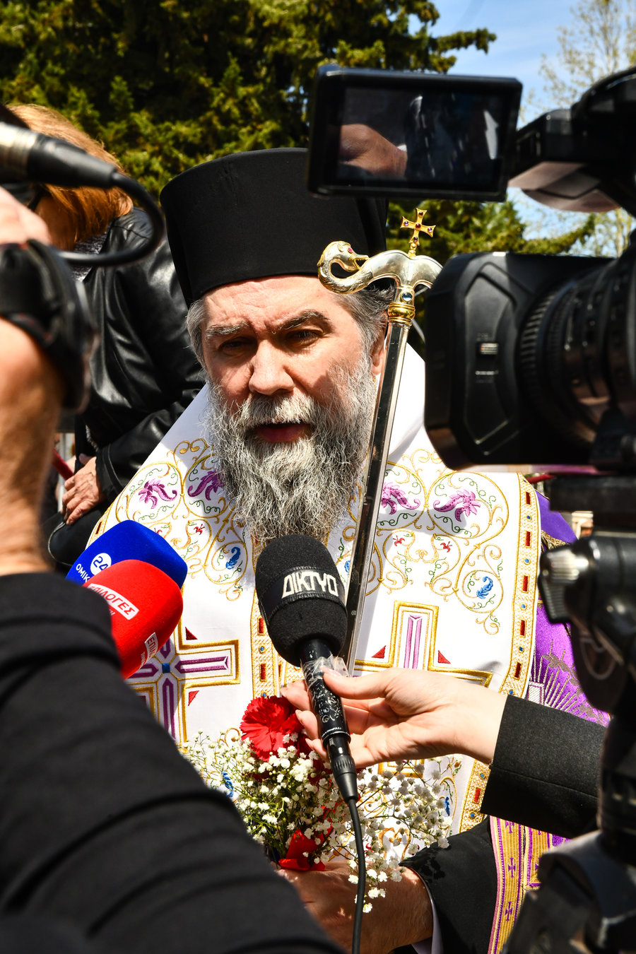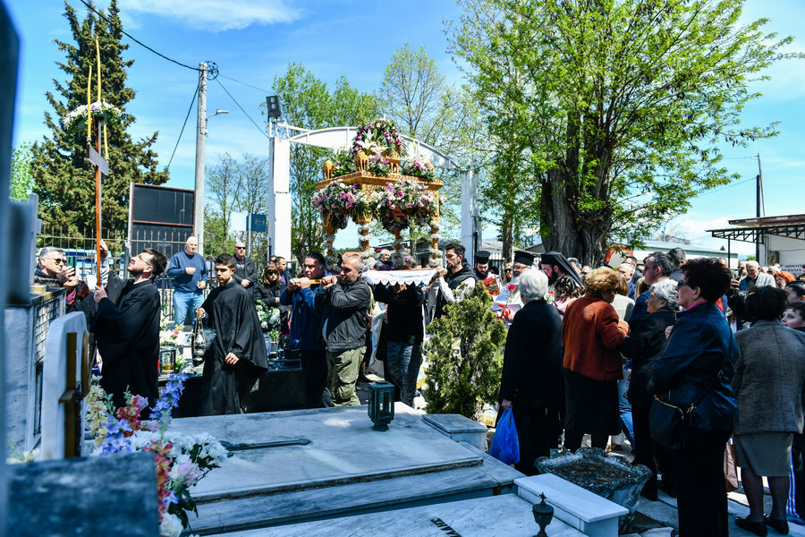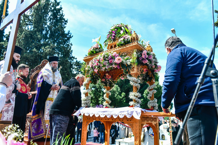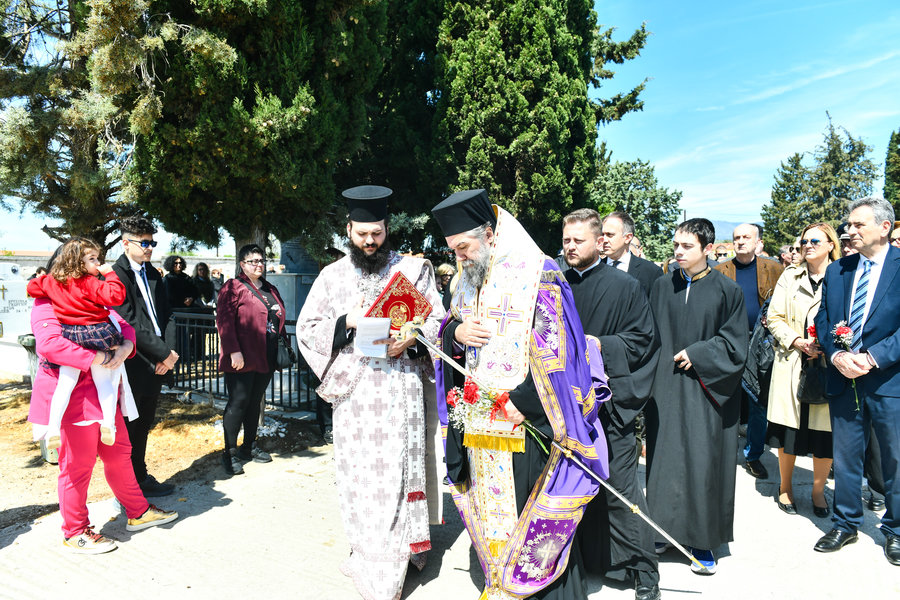 Στις 3:00 μ.μ., ο Σεβασμιώτατος μετέβη στο Α’ Κοιμητήριο Σερρών, όπου επί του ειδικώς διαμορφωμένου υπερώου επάνω ακριβώς από το οστεοφυλάκιο μαζί με τον ιερό Κλήρο της πόλεως ετέλεσαν την ιερά ακολουθία της Αποκαθηλώσεως και έψαλαν τα εγκώμια.