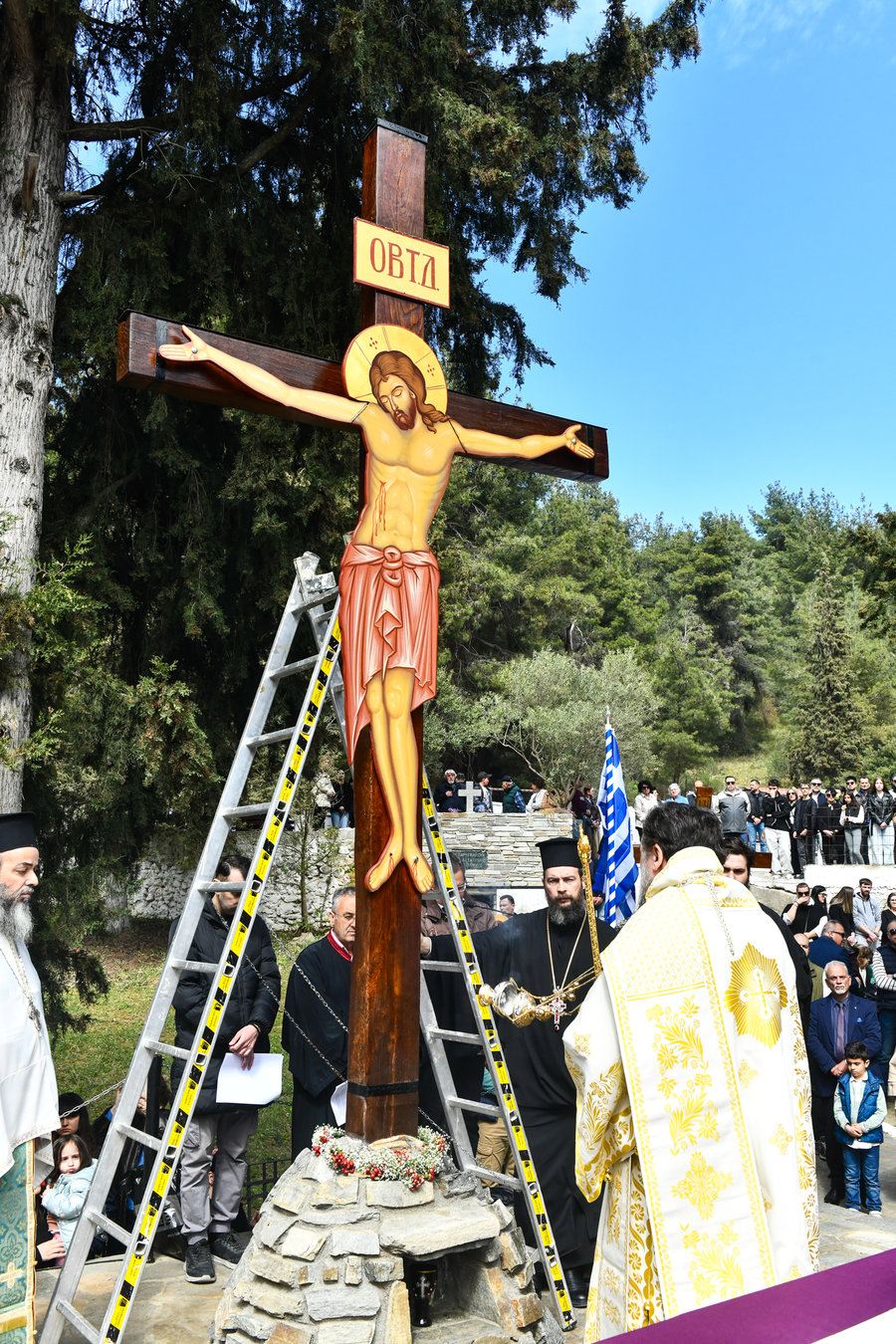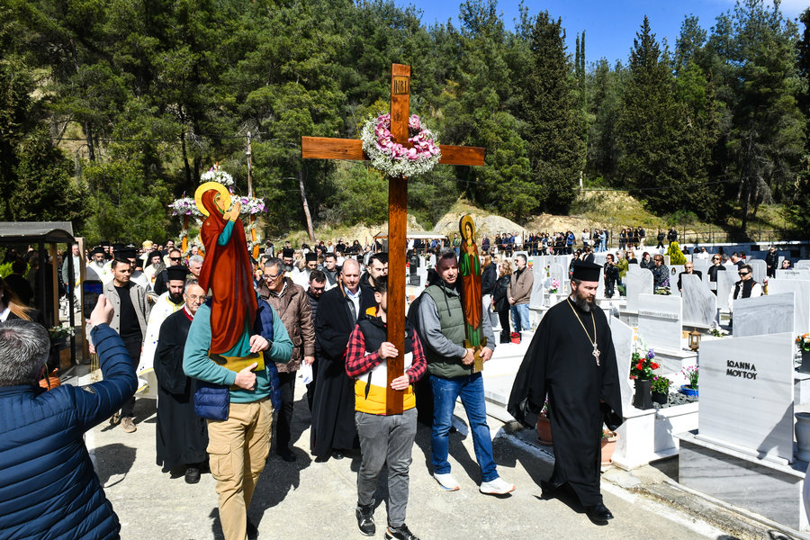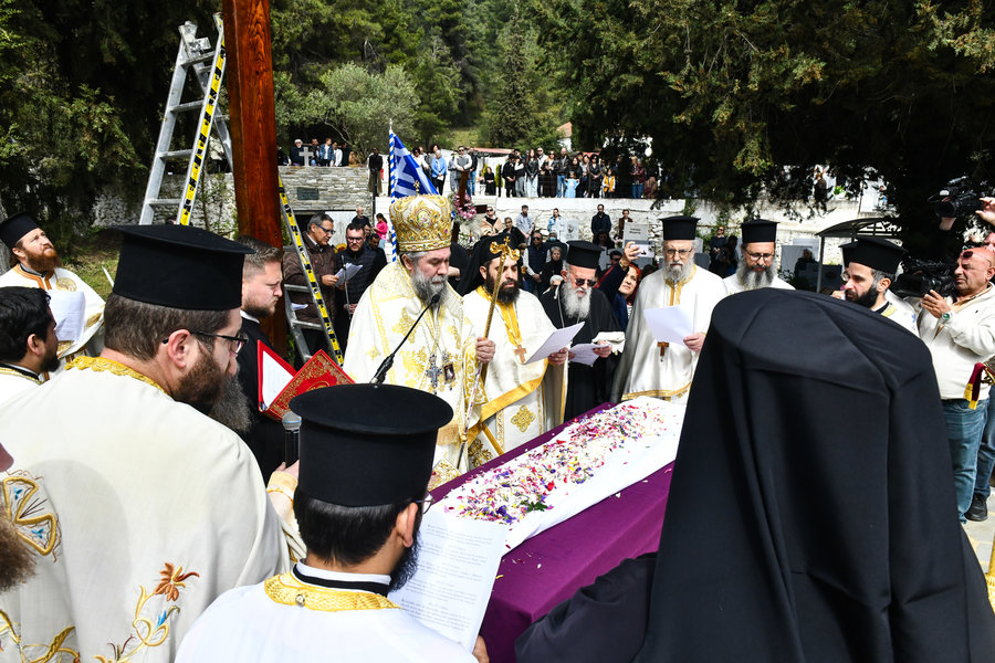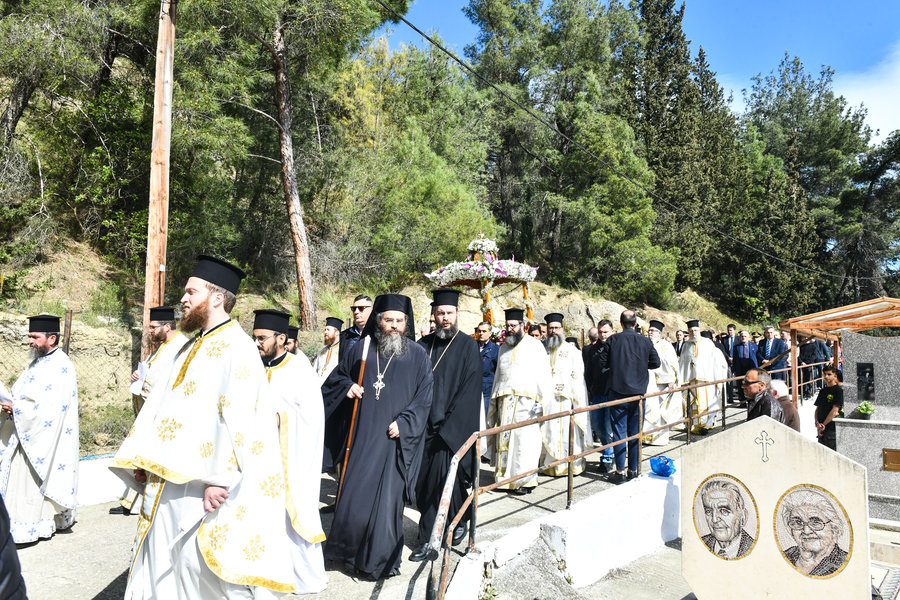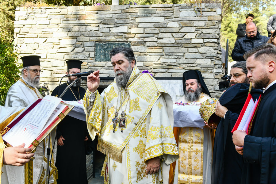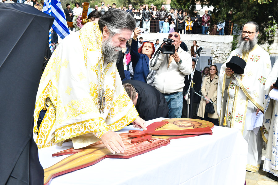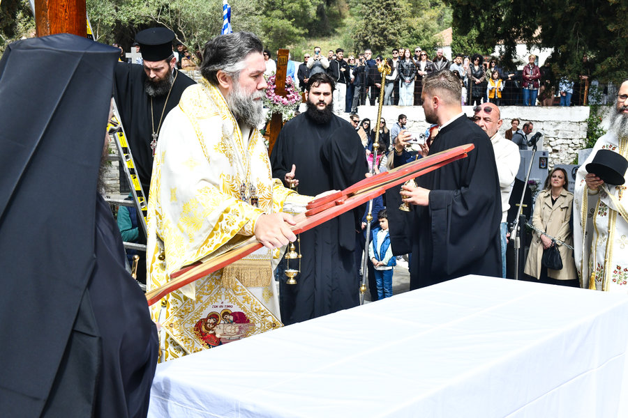 Εν συνεχεία, το αποκαθηλωθέν «Σώμα» του Κυρίου μας οδηγήθηκε λιτανευτικώς στο πλησίον του υπερώου λελατομημένο εκ πέτρας κενοτάφιο. Προ της απολύσεως, ο Σεβασμιώτατος ευχήθηκε υπέρ μακαρίας και αιωνίου αναπαύσεως των ψυχών όλων των κεκοιμημένων αδελφών μας, οι οποίοι, όπως χαρακτηριστικώς ετόνισε, αναμένουν την κοινή Ανάσταση λουσμένοι στο ανέσπερο Φως της αιωνιότητος, που μόνον ο Χριστός, η Ανάσταση και η Ζωή μας χαρίζει.