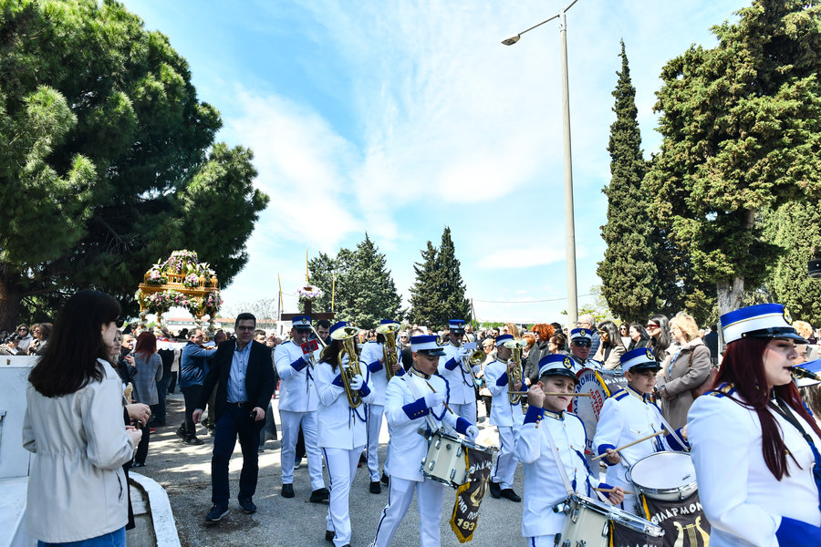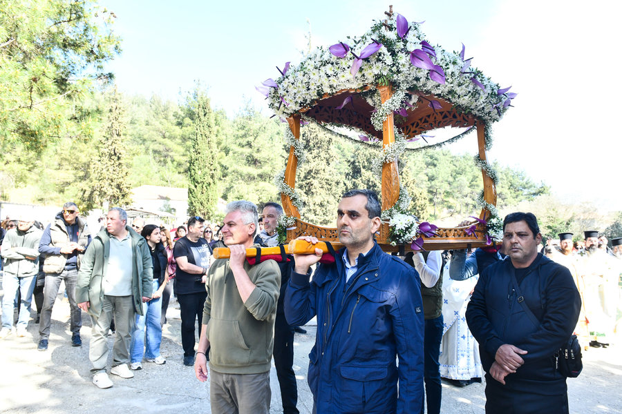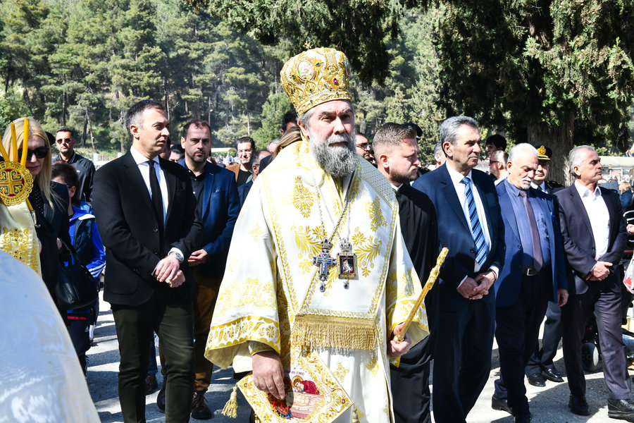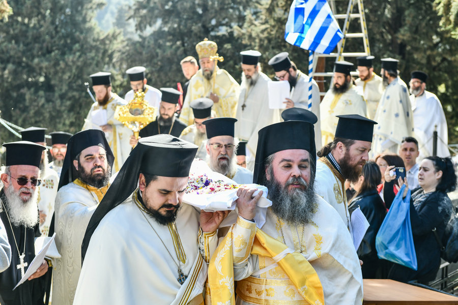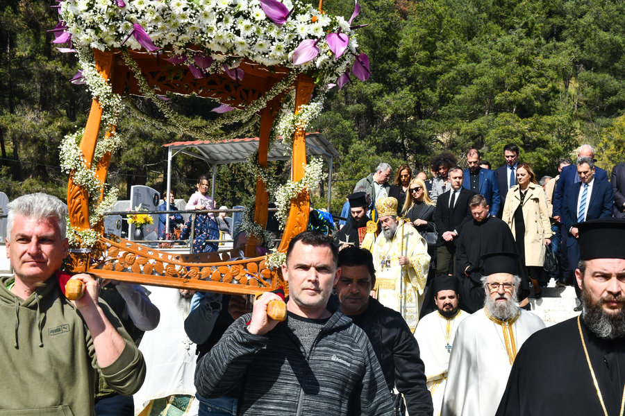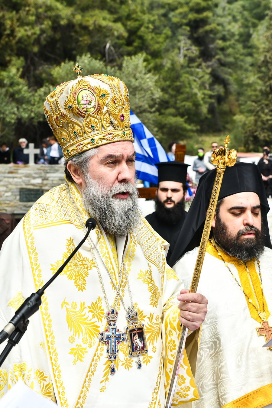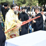 Εν συνεχεία, το αποκαθηλωθέν «Σώμα» του Κυρίου μας οδηγήθηκε λιτανευτικώς στο πλησίον του υπερώου λελατομημένο εκ πέτρας κενοτάφιο. Προ της απολύσεως, ο Σεβασμιώτατος ευχήθηκε υπέρ μακαρίας και αιωνίου αναπαύσεως των ψυχών όλων των κεκοιμημένων αδελφών μας, οι οποίοι, όπως χαρακτηριστικώς ετόνισε, αναμένουν την κοινή Ανάσταση λουσμένοι στο ανέσπερο Φως της αιωνιότητος, που μόνον ο Χριστός, η Ανάσταση και η Ζωή μας χαρίζει.