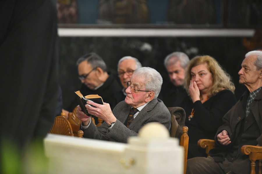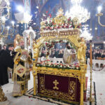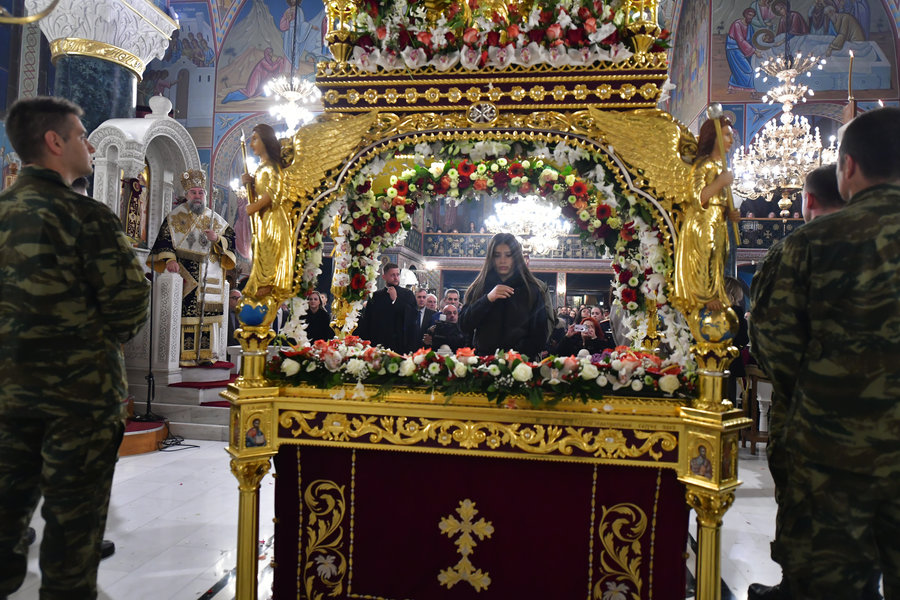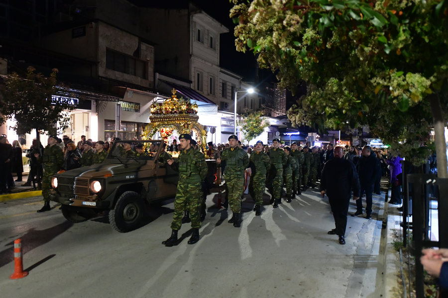 Εν συνεχεία, το αποκαθηλωθέν «Σώμα» του Κυρίου μας οδηγήθηκε λιτανευτικώς στο πλησίον του υπερώου λελατομημένο εκ πέτρας κενοτάφιο. Προ της απολύσεως, ο Σεβασμιώτατος ευχήθηκε υπέρ μακαρίας και αιωνίου αναπαύσεως των ψυχών όλων των κεκοιμημένων αδελφών μας, οι οποίοι, όπως χαρακτηριστικώς ετόνισε, αναμένουν την κοινή Ανάσταση λουσμένοι στο ανέσπερο Φως της αιωνιότητος, που μόνον ο Χριστός, η Ανάσταση και η Ζωή μας χαρίζει.