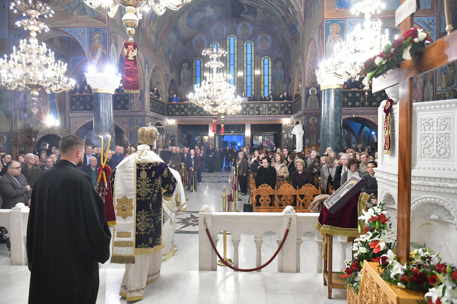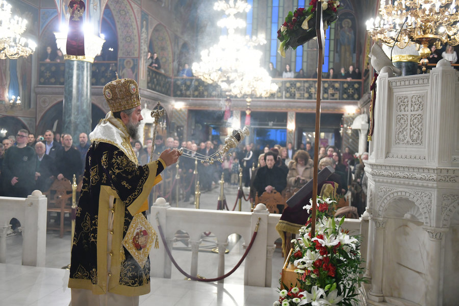 Προ της αναγνώσεως του ιερού Ευαγγελίου της Αποκαθηλώσεως, στον εμπνευσμένο, από το ιε’ Αντίφωνο της ακολουθίας των αχράντων Παθών του Κυρίου μας: «Τάδε λέγει Κύριος τοῖς Ἰουδαίοις· Λαός μου, τί ἐποίησά σοι ἤ τί σοι παρηνώχλησα; τούς τυφλούς σου ἐφώτισα, τούς λεπρούς σου ἐκαθάρισα, ἄνδρα ὄντα ἐπί κλίνης ἠνωρθωσάμην. Λαός μου, τί ἐποίησά σοι, καί τί μοι ἀνταπέδωκας; Ἀντί τοῦ μάννα χολήν∙ ἀντί τοῦ ὕδατος ὄξος· ἀντί τοῦ ἀγαπᾶν με σταυρῷ με προσηλώσατε…», διδακτικότατο λόγο του, ο Σεβασμιώτατος ανέφερε μεταξύ άλλων και τα εξής: