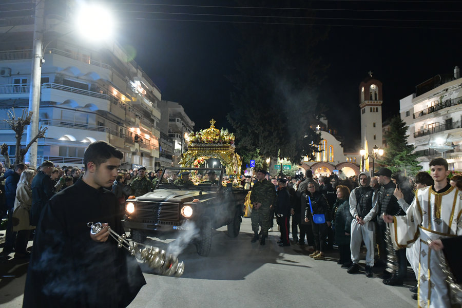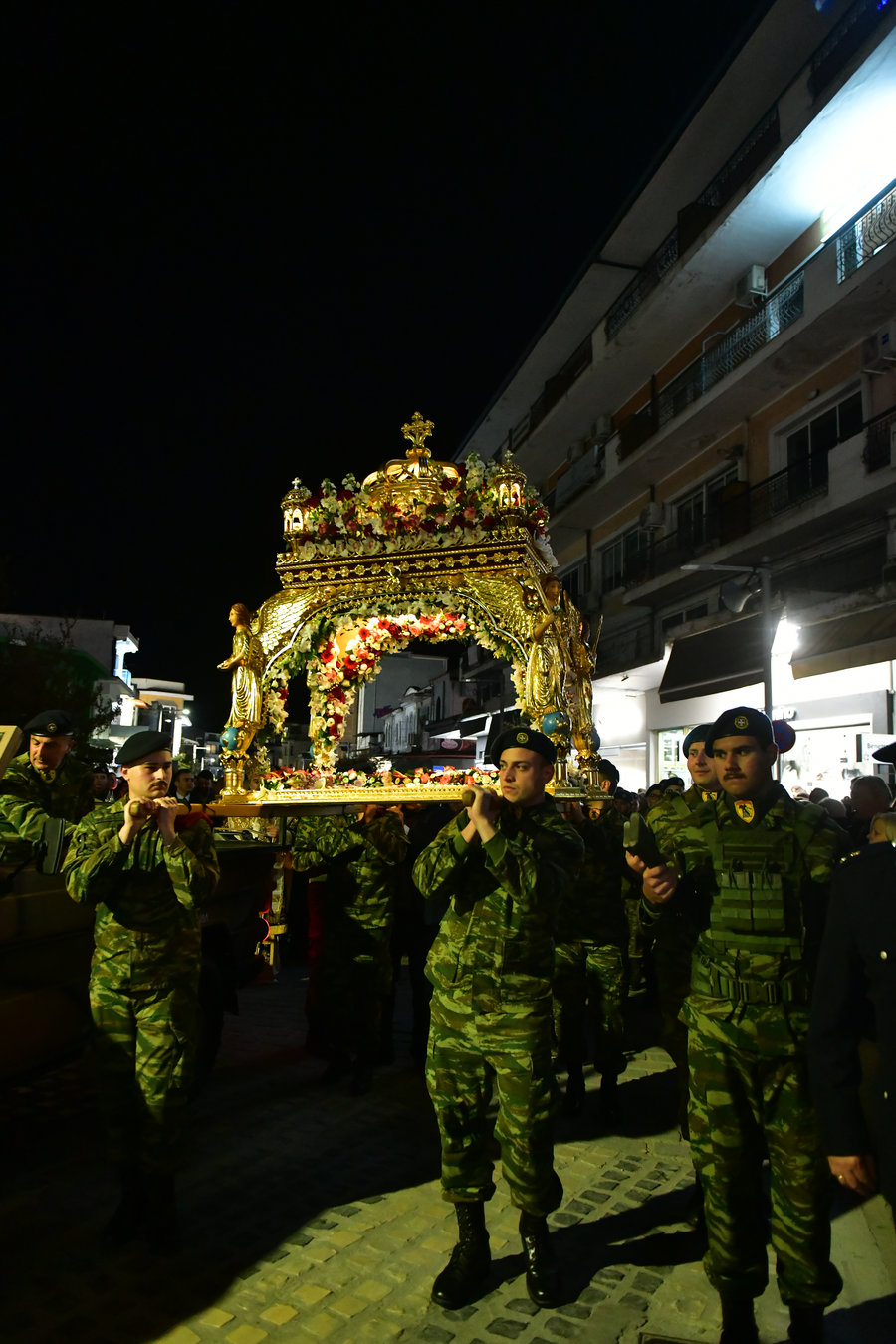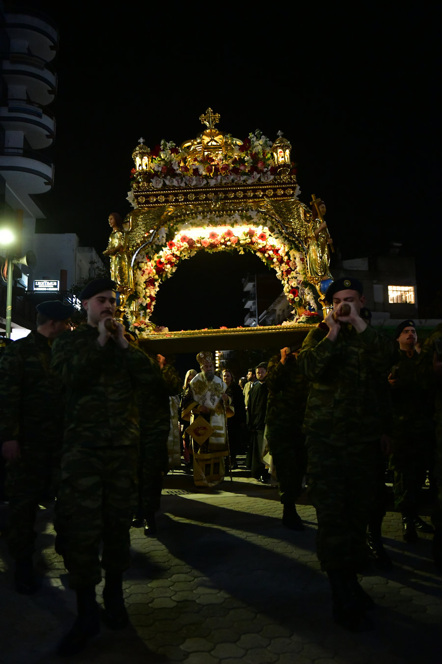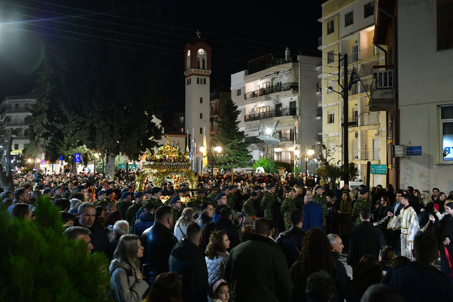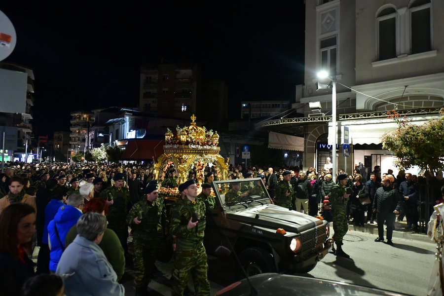 Μετά την έξοδο και την λιτάνευση του ιερού Κουβουκλίου, πραγματοποιήθηκε, στις 9:30 το βράδυ, η καθιερωμένη συνάντηση των Επιταφίων των κεντρικών ιερών Ναών της πόλεως των Σερρών στην πλατεία «ΕΛΕΥΘΕΡΙΑΣ» με την πληθωρική συμμετοχή χιλιάδων πιστού λαού του Θεού.