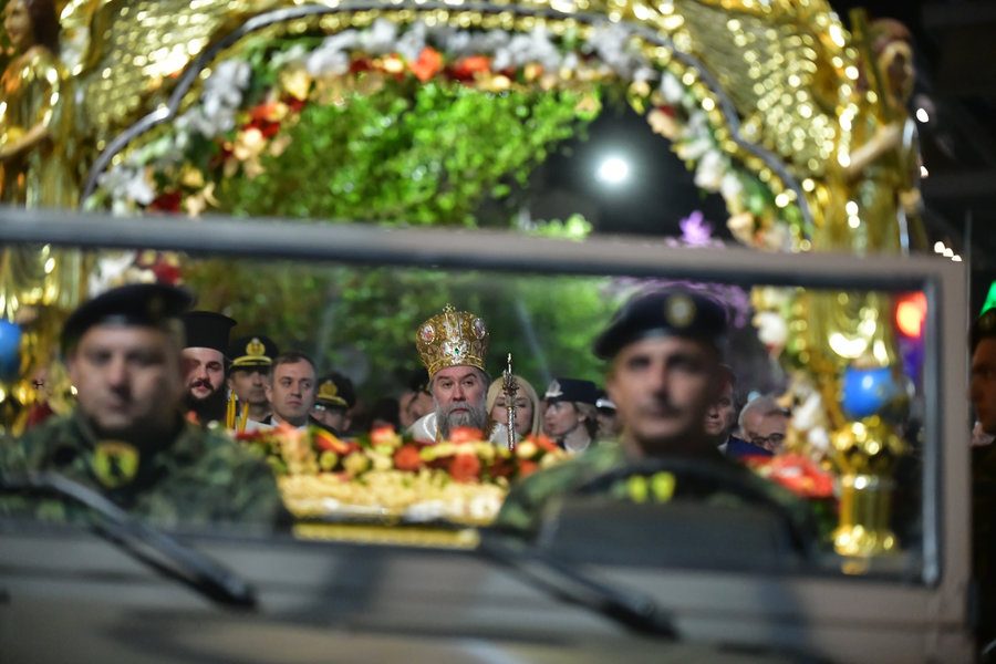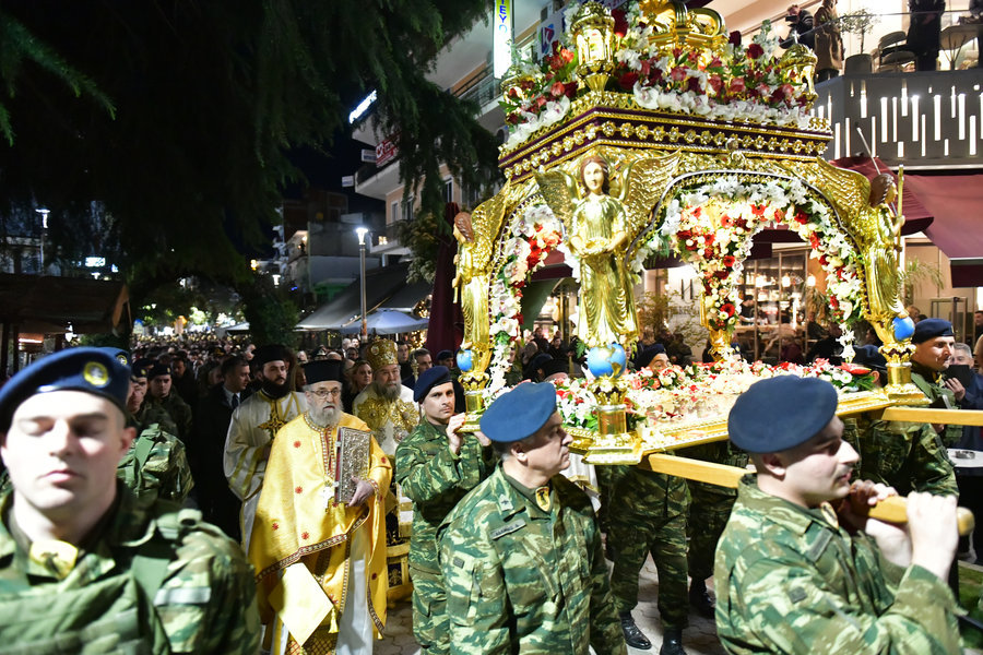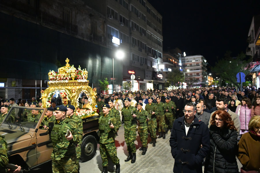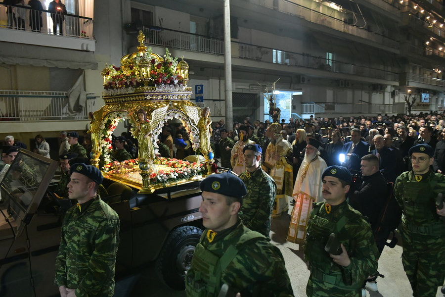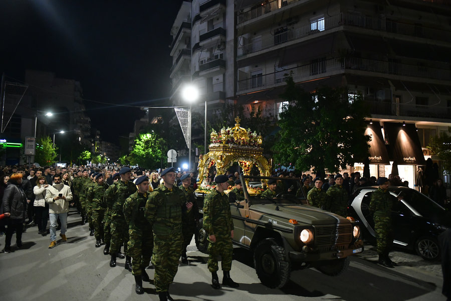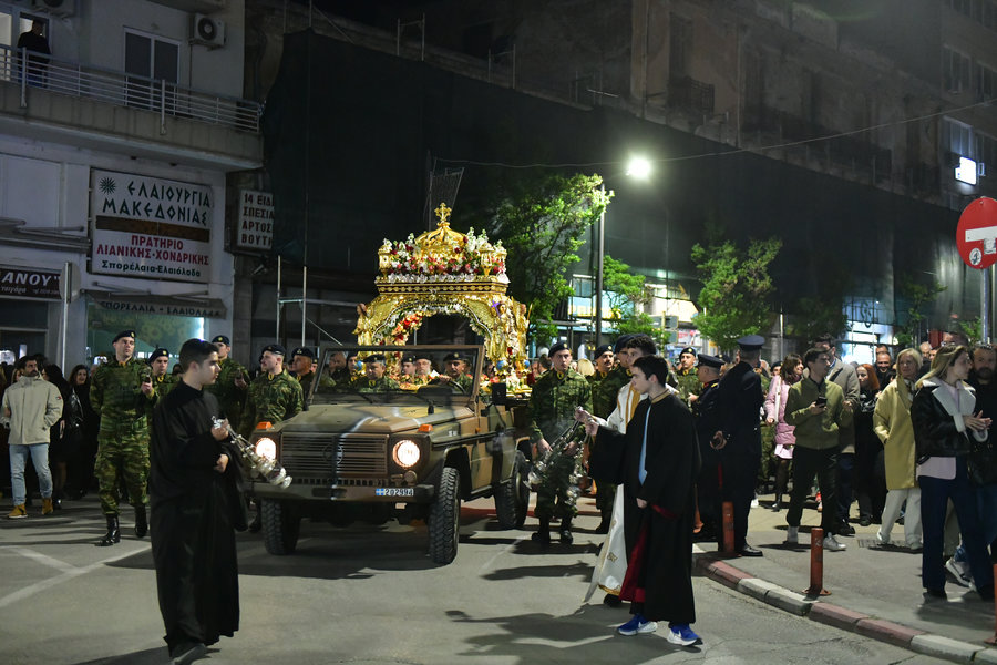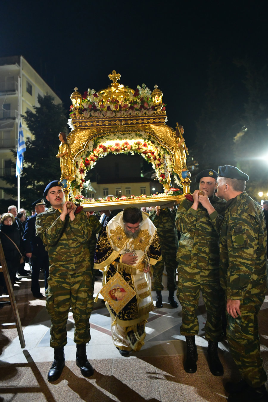 Μετά την έξοδο και την λιτάνευση του ιερού Κουβουκλίου, πραγματοποιήθηκε, στις 9:30 το βράδυ, η καθιερωμένη συνάντηση των Επιταφίων των κεντρικών ιερών Ναών της πόλεως των Σερρών στην πλατεία «ΕΛΕΥΘΕΡΙΑΣ» με την πληθωρική συμμετοχή χιλιάδων πιστού λαού του Θεού.