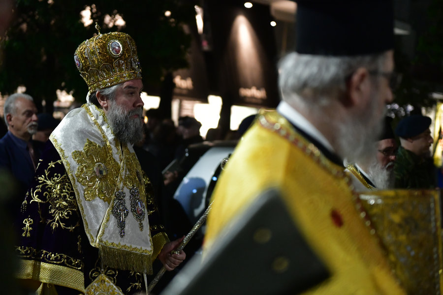 Στην ακολουθία του Επιταφίου θρήνου, που τελέσθηκε την αγία και μεγάλη Παρασκευή, 10 Απριλίου 2026, στον ιερό Μητροπολιτικό Ναό Παμμ. Ταξιαρχών Σερρών, χοροστάτησε στις 7:00 το απόγευμα, ο Σεβ. Μητροπολίτης Σερρών και Νιγρίτης κ. Θεολόγος.