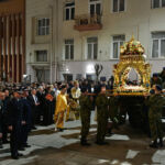 Ακολούθως, στις 9:30 το βράδυ θα πραγματοποιηθεί η καθιερωμένη συνάντηση των Επιταφίων των κεντρικών ιερών Ναών της πόλεως των Σερρών στην πλατεία «ΕΛΕΥΘΕΡΙΑΣ».