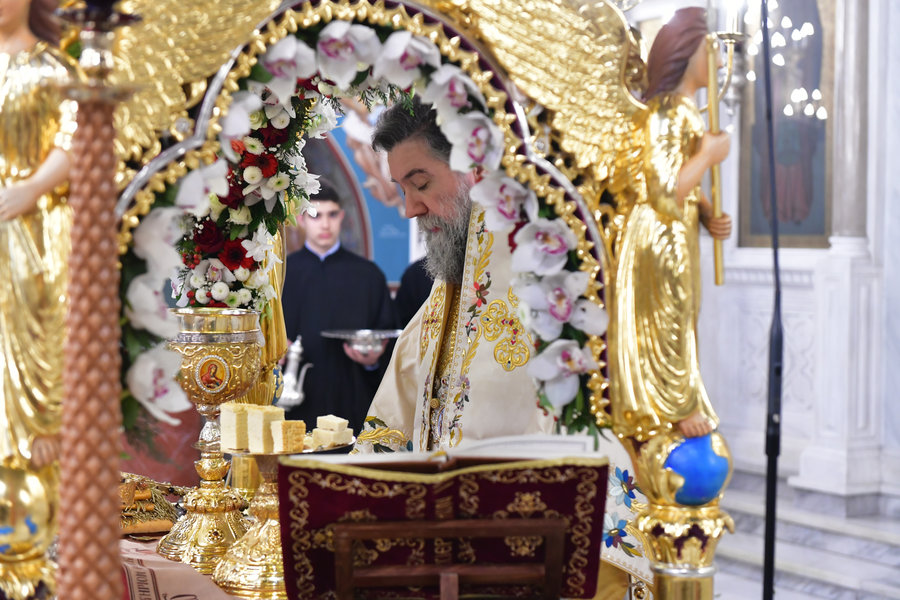 Τέλος, ο Σεβασμιώτατος ευχήθηκε πατρικώς στους συμπροσευχομένους πιστούς, που κατέκλυσαν, από νωρίς το πρωί τον ιερό Μητροπολιτικό Ναό για να εκκλησιασθούν και να μεταλάβουν, από το Ποτήριον της Ζωής, ευλογημένη και ψυχοσωτήριο Ανάσταση.