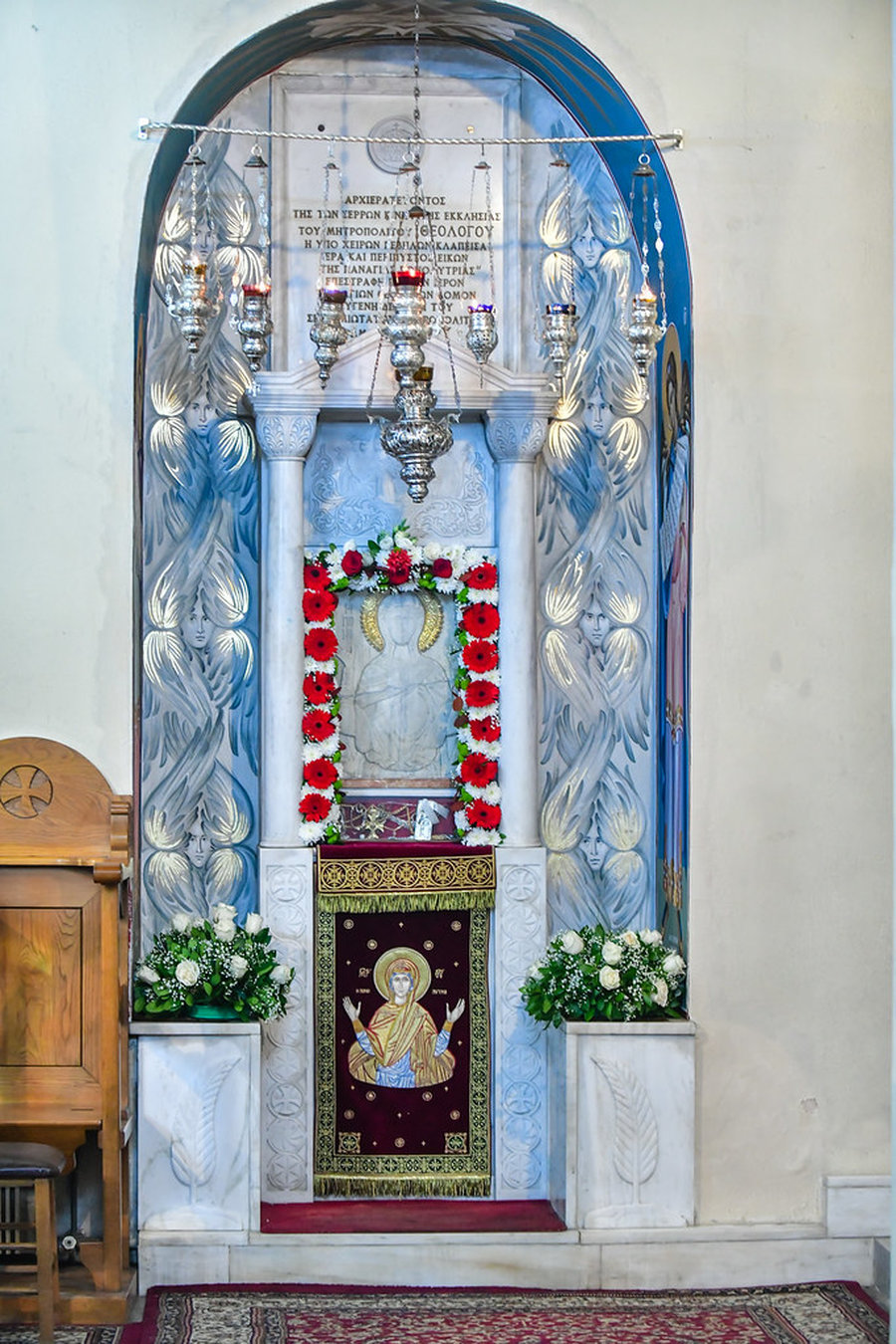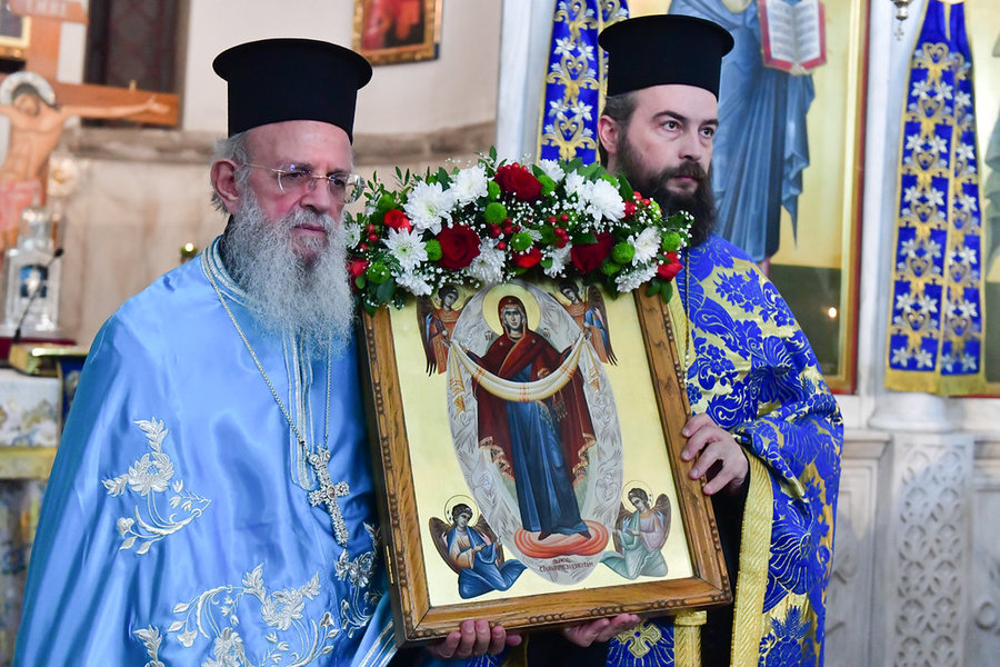 Η υπεραγία Θεοτόκος, το αμόλυντο κειμήλιο της παρθενίας, που μας κρατά με αγάπη μέσα στη στοργική αγκάλη Της όλους μας, μας παρηγορεί, μας ενισχύει, σκουπίζει τα δάκρυά μας και επουλώνει τις πληγές μας, μας εσύναξε απόψε πλησίον Της, για να λάβουμε κατά το μέτρο της πίστεώς μας από τον Κύριό μας, με την δική Της μεσιτεία, χάρη και έλεος, παρηγοριά και δύναμη, ενίσχυση και ελπίδα.