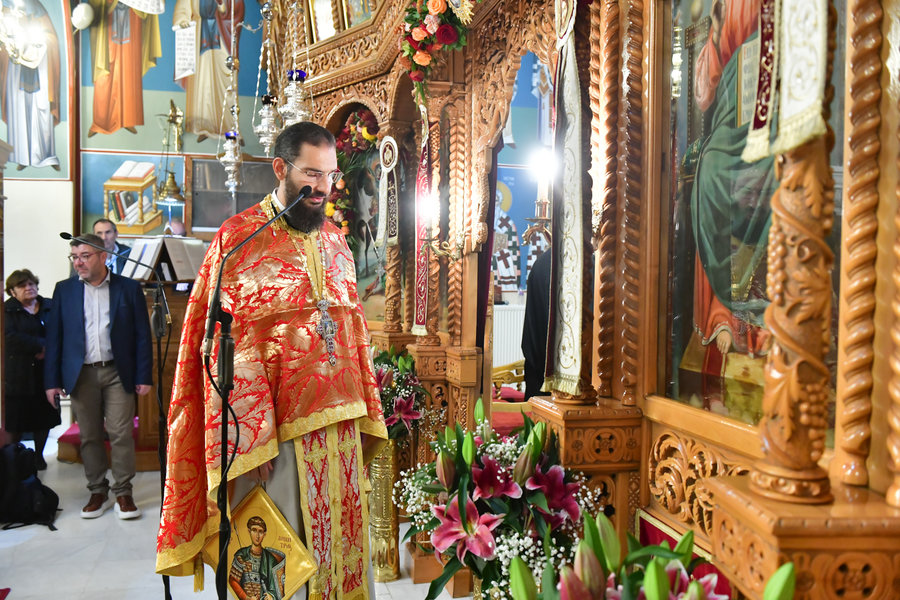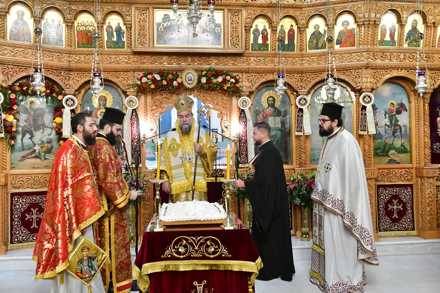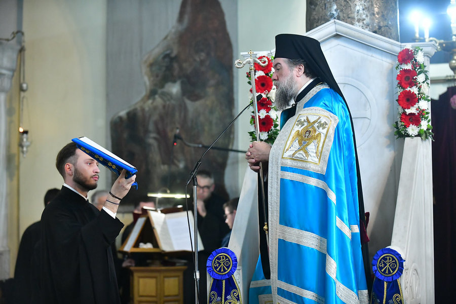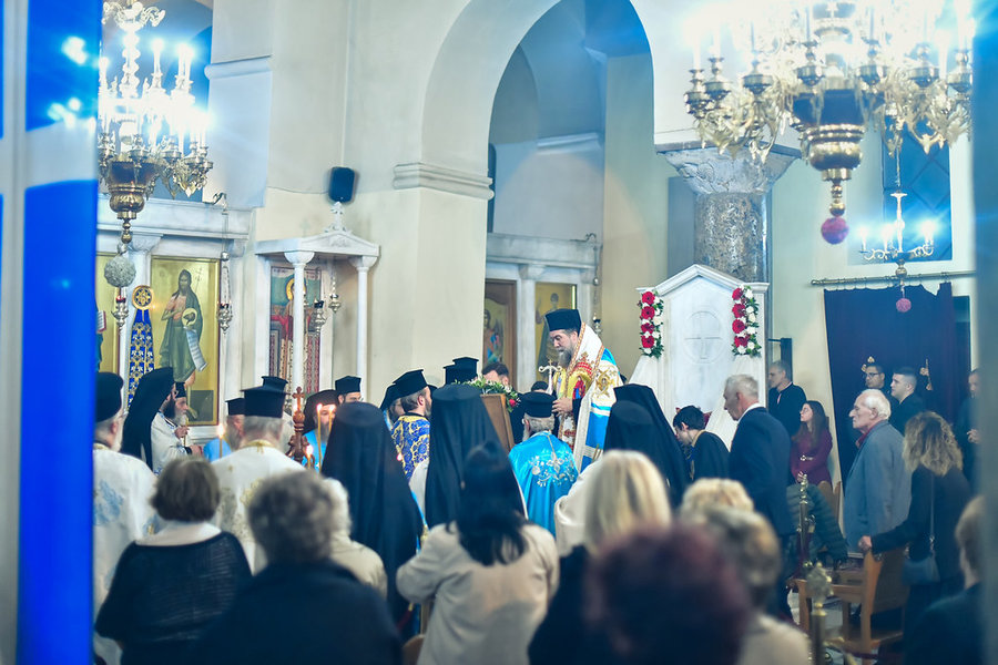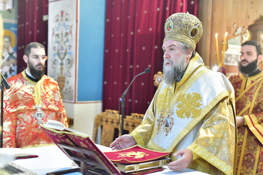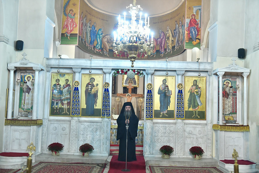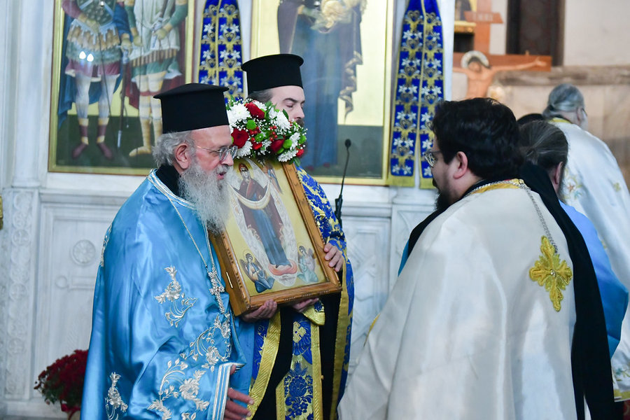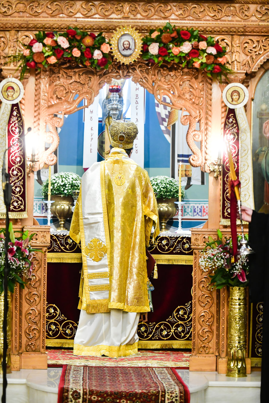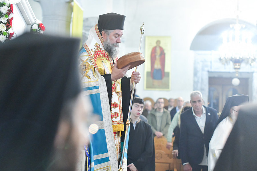 Προ της απολύσεως της ιεράς ακολουθίας, στην εμπνευσμένη, από τον λόγο του Αγ. Ιωάννου του Δαμασκηνού: «Ὅθεν δικαίως καὶ ἀληθῶς Θεοτόκον τὴν ἁγίαν Μαρίαν ὀνομάζομεν· τοῦτο γὰρ τὸ ὄνομα ἅπαν τὸ μυστήριο τῆς οἰκονομίας συνίστησι», (Έκδοσις ακριβής της Ορθοδόξου Πίστεως Γ’, 12 (56) (PG 94, 1029C), σύντομη ομιλία του, ο Σεβ. κ. Θεολόγος ανέφερε μεταξύ άλλων και τα εξής: