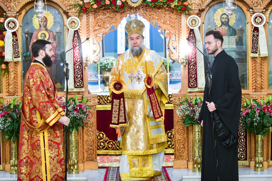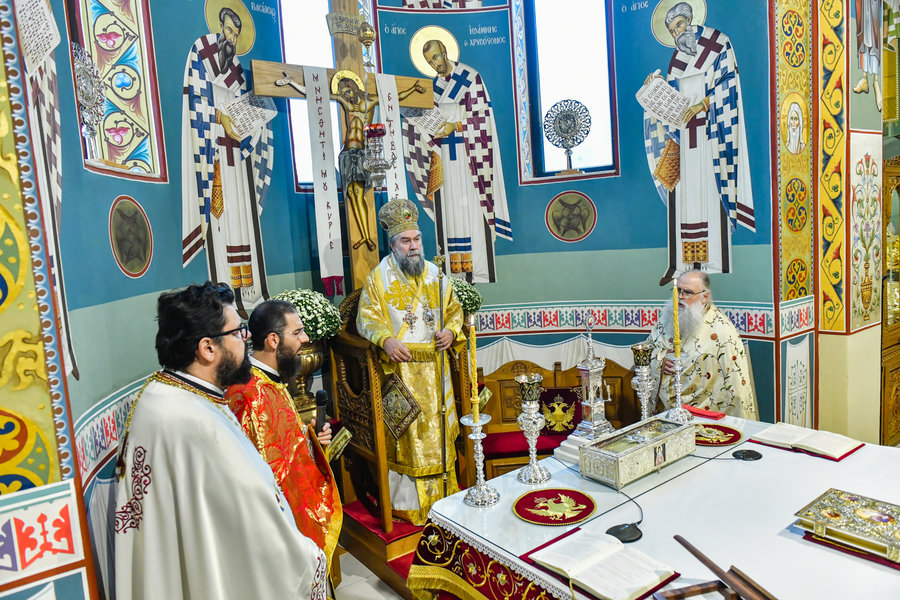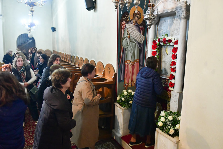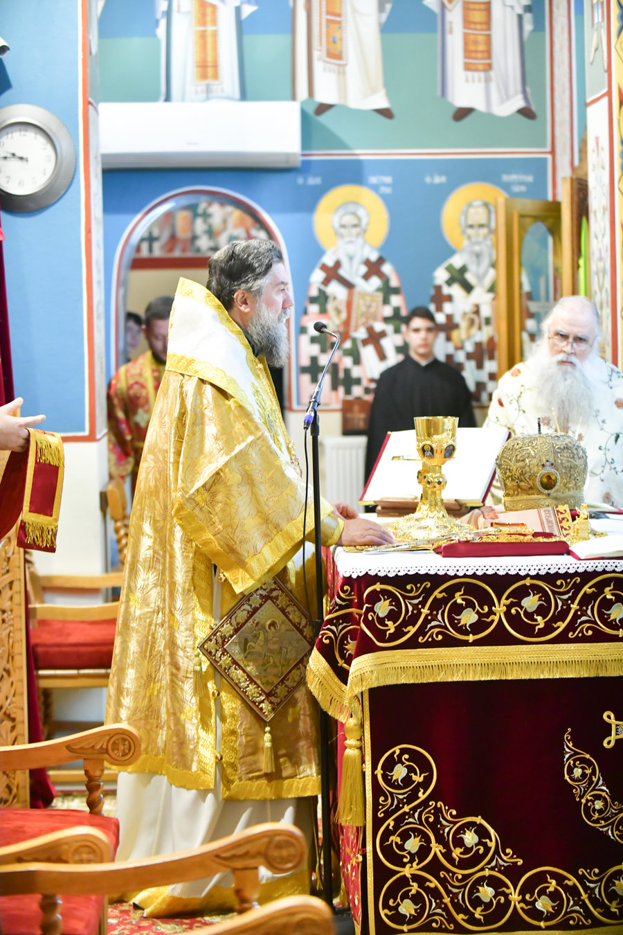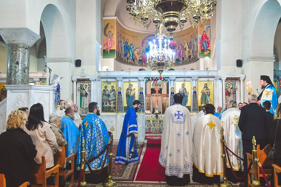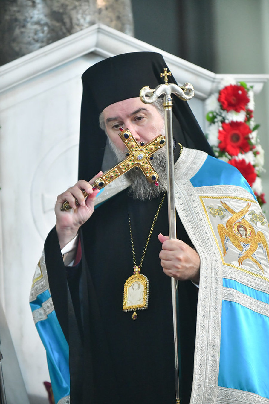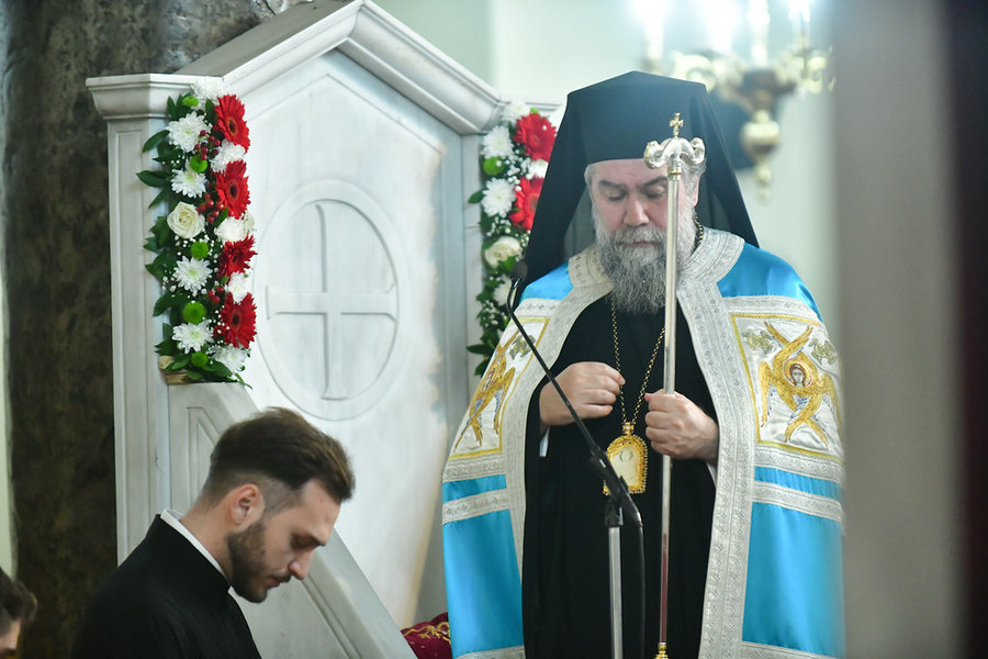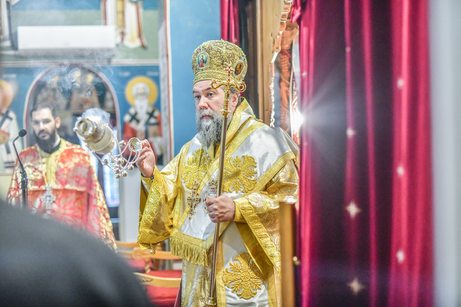 Προ της απολύσεως της ιεράς ακολουθίας, στην εμπνευσμένη, από τον λόγο του Αγ. Ιωάννου του Δαμασκηνού: «Ὅθεν δικαίως καὶ ἀληθῶς Θεοτόκον τὴν ἁγίαν Μαρίαν ὀνομάζομεν· τοῦτο γὰρ τὸ ὄνομα ἅπαν τὸ μυστήριο τῆς οἰκονομίας συνίστησι», (Έκδοσις ακριβής της Ορθοδόξου Πίστεως Γ’, 12 (56) (PG 94, 1029C), σύντομη ομιλία του, ο Σεβ. κ. Θεολόγος ανέφερε μεταξύ άλλων και τα εξής: