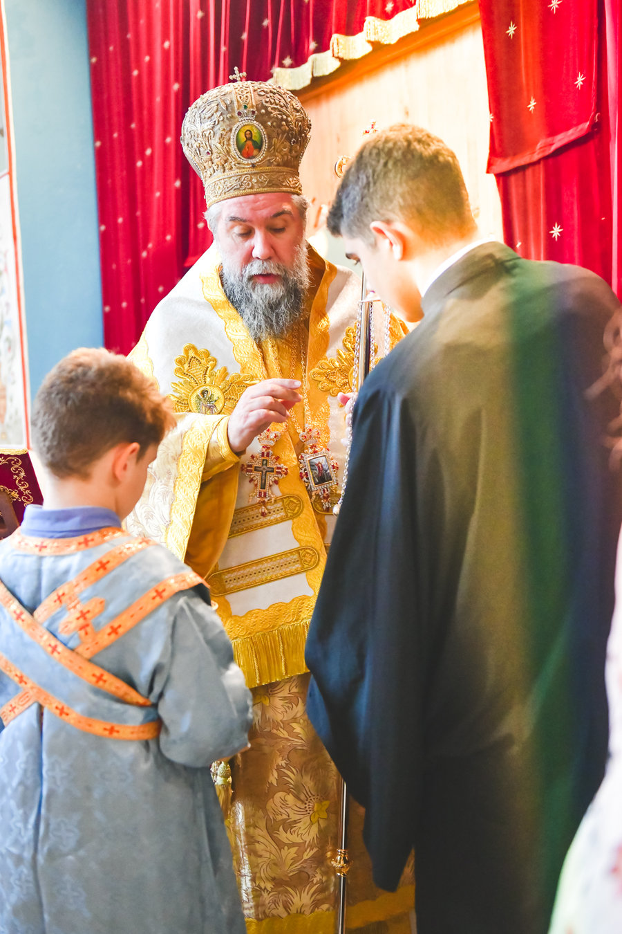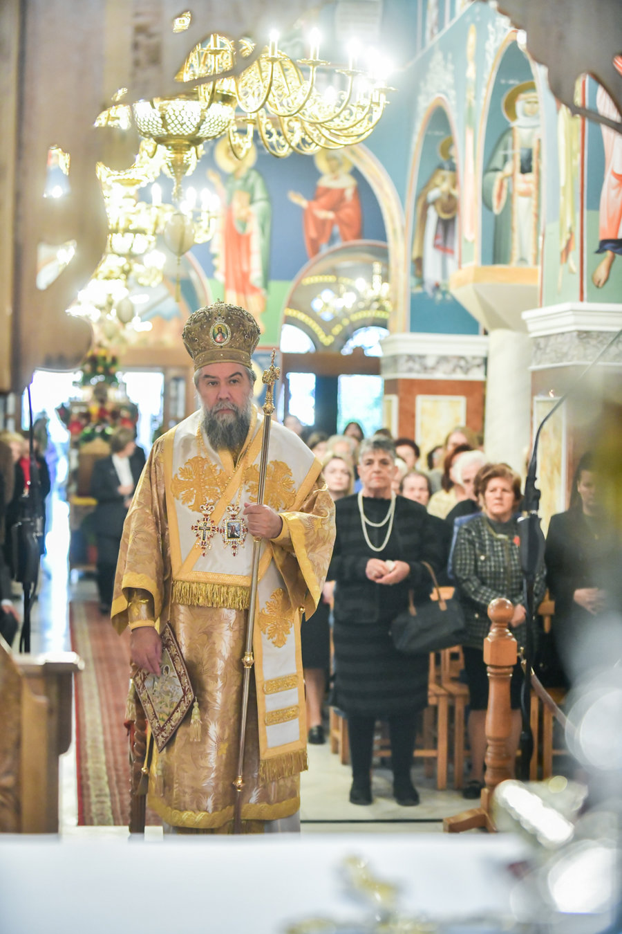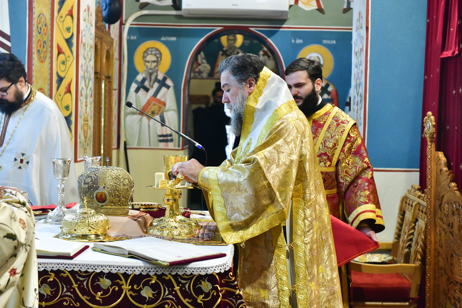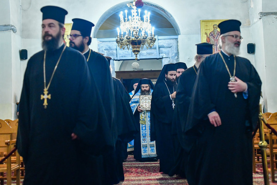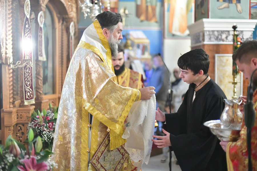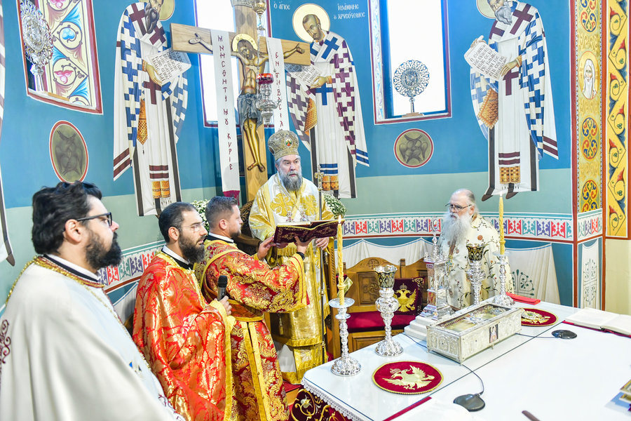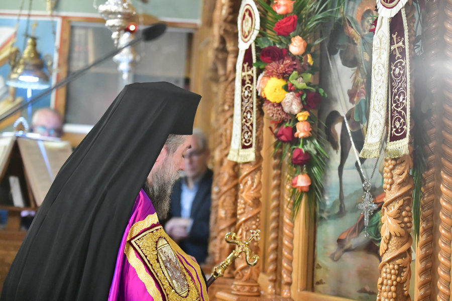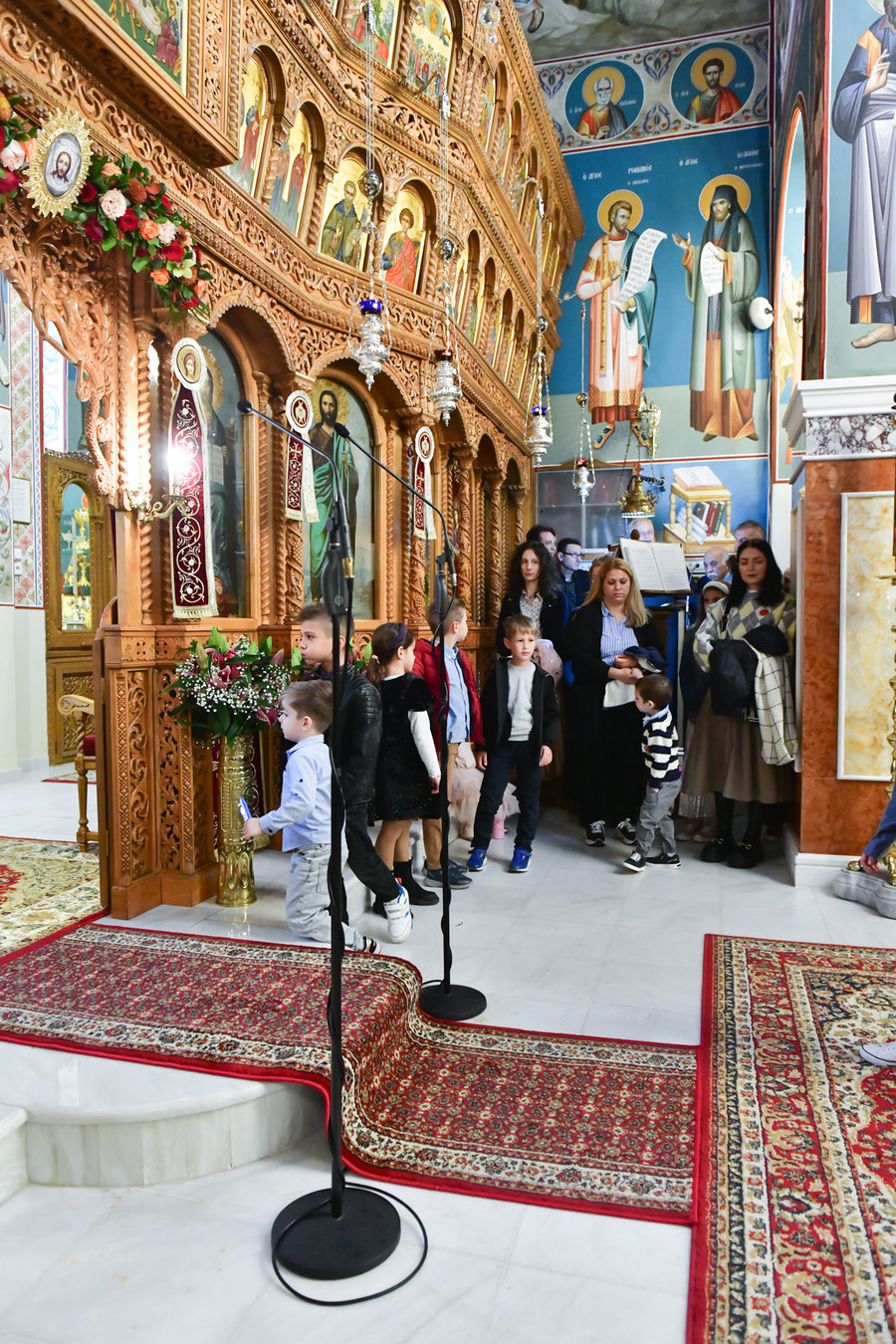 Προ της απολύσεως της ιεράς ακολουθίας, στην εμπνευσμένη, από τον λόγο του Αγ. Ιωάννου του Δαμασκηνού: «Ὅθεν δικαίως καὶ ἀληθῶς Θεοτόκον τὴν ἁγίαν Μαρίαν ὀνομάζομεν· τοῦτο γὰρ τὸ ὄνομα ἅπαν τὸ μυστήριο τῆς οἰκονομίας συνίστησι», (Έκδοσις ακριβής της Ορθοδόξου Πίστεως Γ’, 12 (56) (PG 94, 1029C), σύντομη ομιλία του, ο Σεβ. κ. Θεολόγος ανέφερε μεταξύ άλλων και τα εξής:
