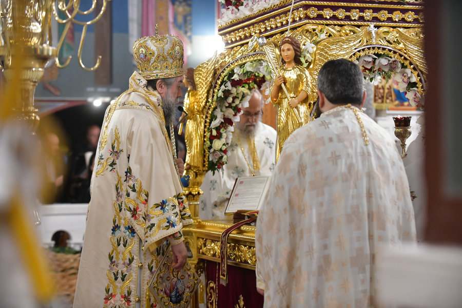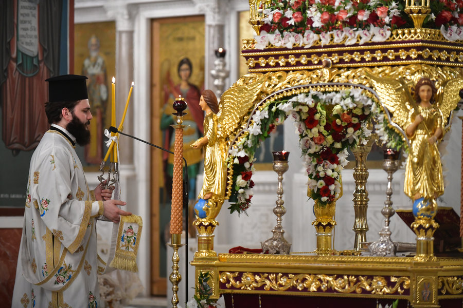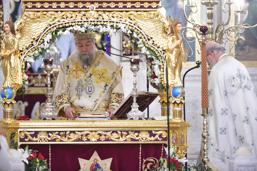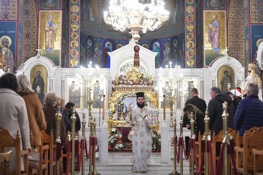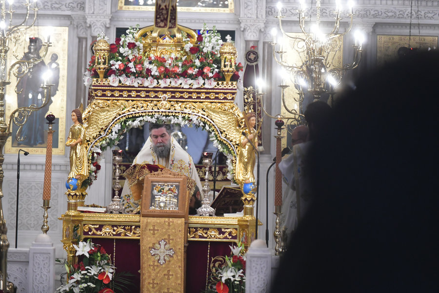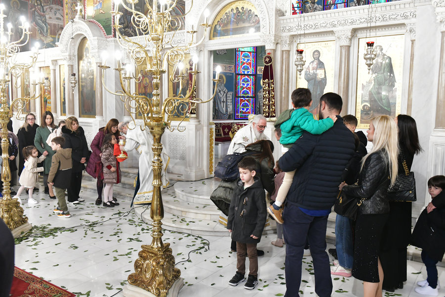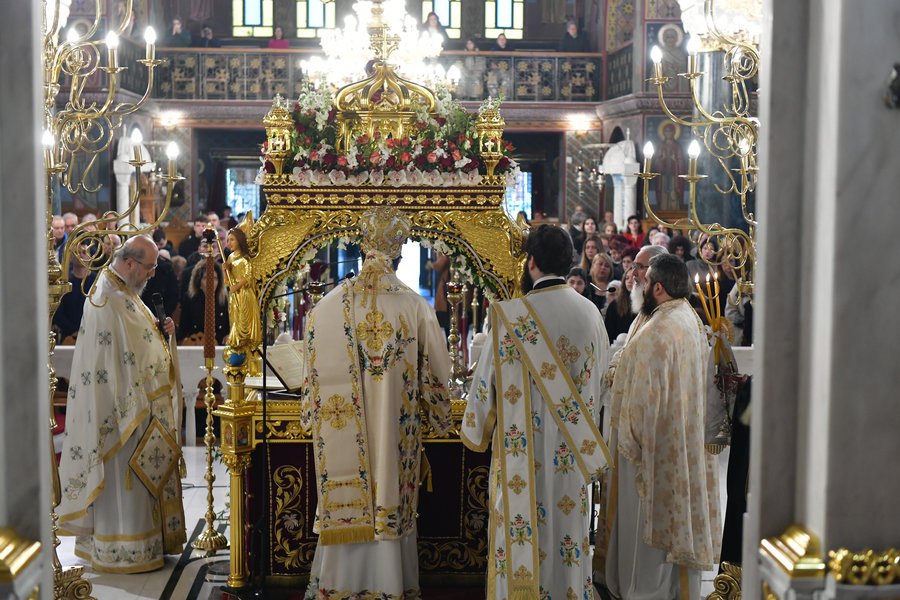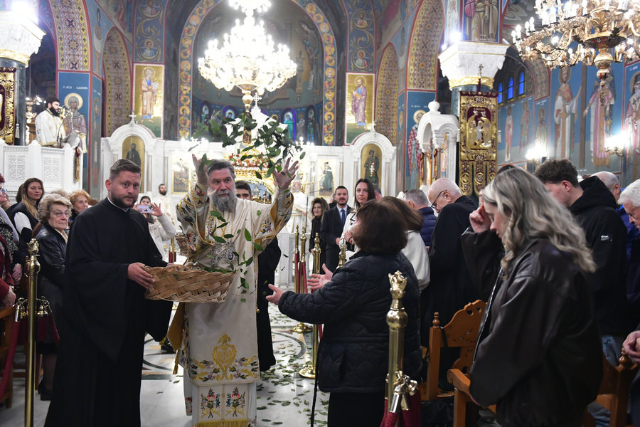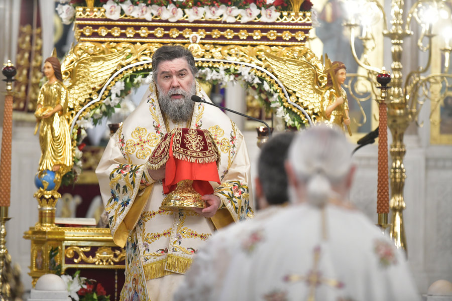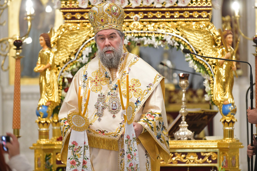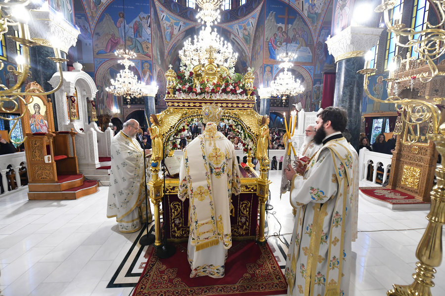 Τέλος, ο Σεβασμιώτατος ευχήθηκε πατρικώς στους συμπροσευχομένους πιστούς, που κατέκλυσαν, από νωρίς το πρωί τον ιερό Μητροπολιτικό Ναό για να εκκλησιασθούν και να μεταλάβουν, από το Ποτήριον της Ζωής, ευλογημένη και ψυχοσωτήριο Ανάσταση.