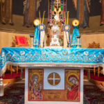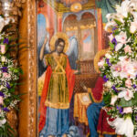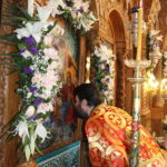 Τούτο το μέγιστο μυστήριο της Υπερευλογημένης Μαρίας, που οι πατέρες και διδάσκαλοι της Εκκλησίας μας προσέγγισαν θεολογικώς, ο ιερός χρωστήρας της εκκλησιαστικής ευλαβείας το αποτύπωσε με σεμνοπρεπή εκφραστικότητα στις ιερές εικόνες Της. Οι ιερές εικόνες δεν αποτελούν ένα εικαστικό δημιούργημα της ανθρώπινης καλλιτεχνίας, αλλά φανέρωση και έκφραση των ακαταλήπτων για την πεπερασμένη ανθρώπινη διάνοια μυστηρίων του Θεού, κυρίως δε του μυστηρίου της θείας ενανθρωπήσεως και του δοξασμού του θεουμένου ανθρώπου. Αποτελούν την διά χρωμάτων αποτύπωσιν της σωζούσης και αγιαζούσης αληθείας της πίστεώς μας. Οι ιερές εικόνες της Εκκλησίας μας ανοίγουν ένα παράθυρο στην αιωνιότητα, φανερώνουν το κάλλος και την λαμπρότητα της καινής εν Χριστώ κτίσεως, την οποία εικονίζουν και στην οποία μας μυσταγωγούν.
